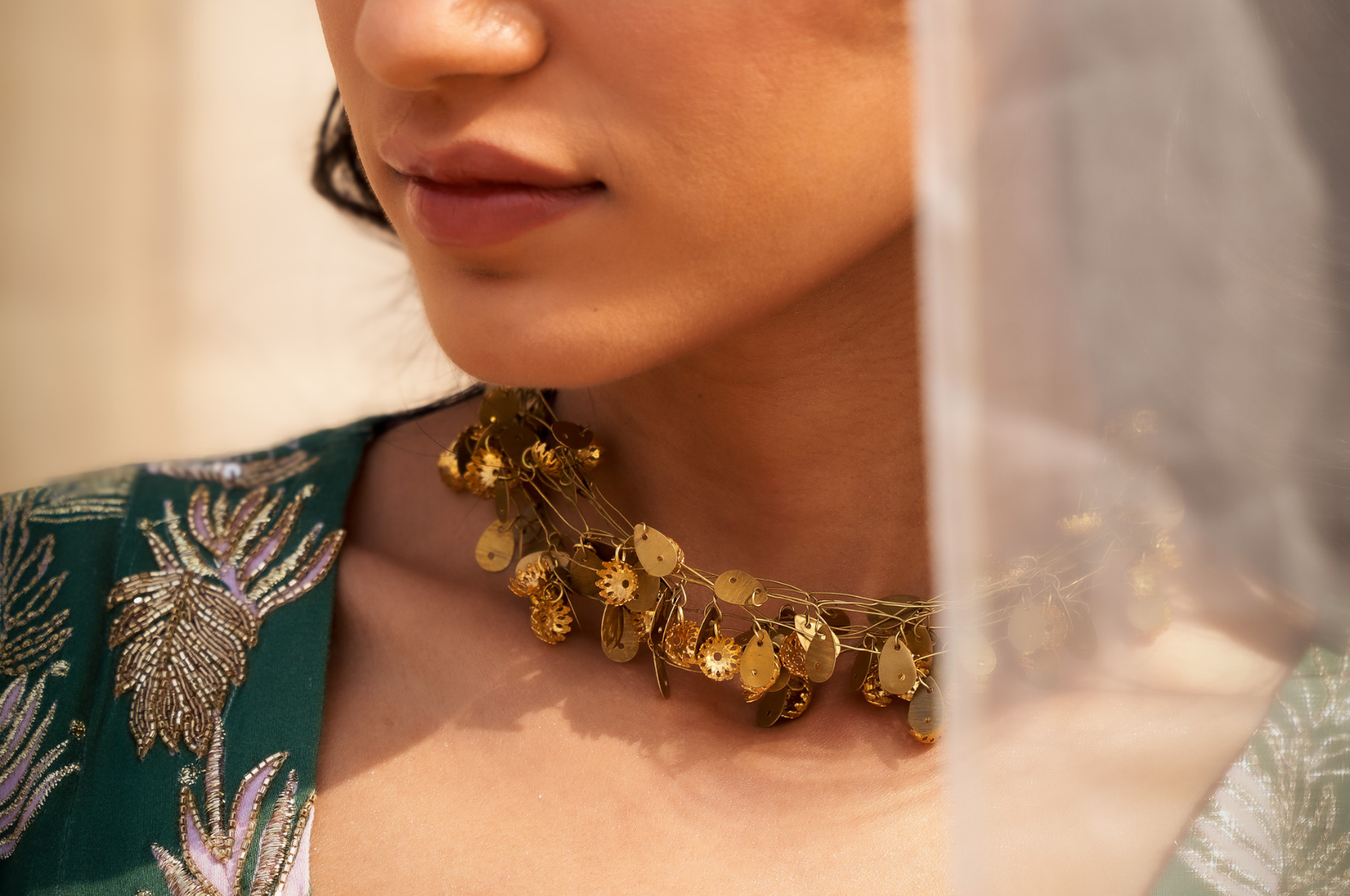 Threads of gold, whispers of time — Maaya weaves handworked Zari into modern designs, blending old-world charm with quiet sophistication.