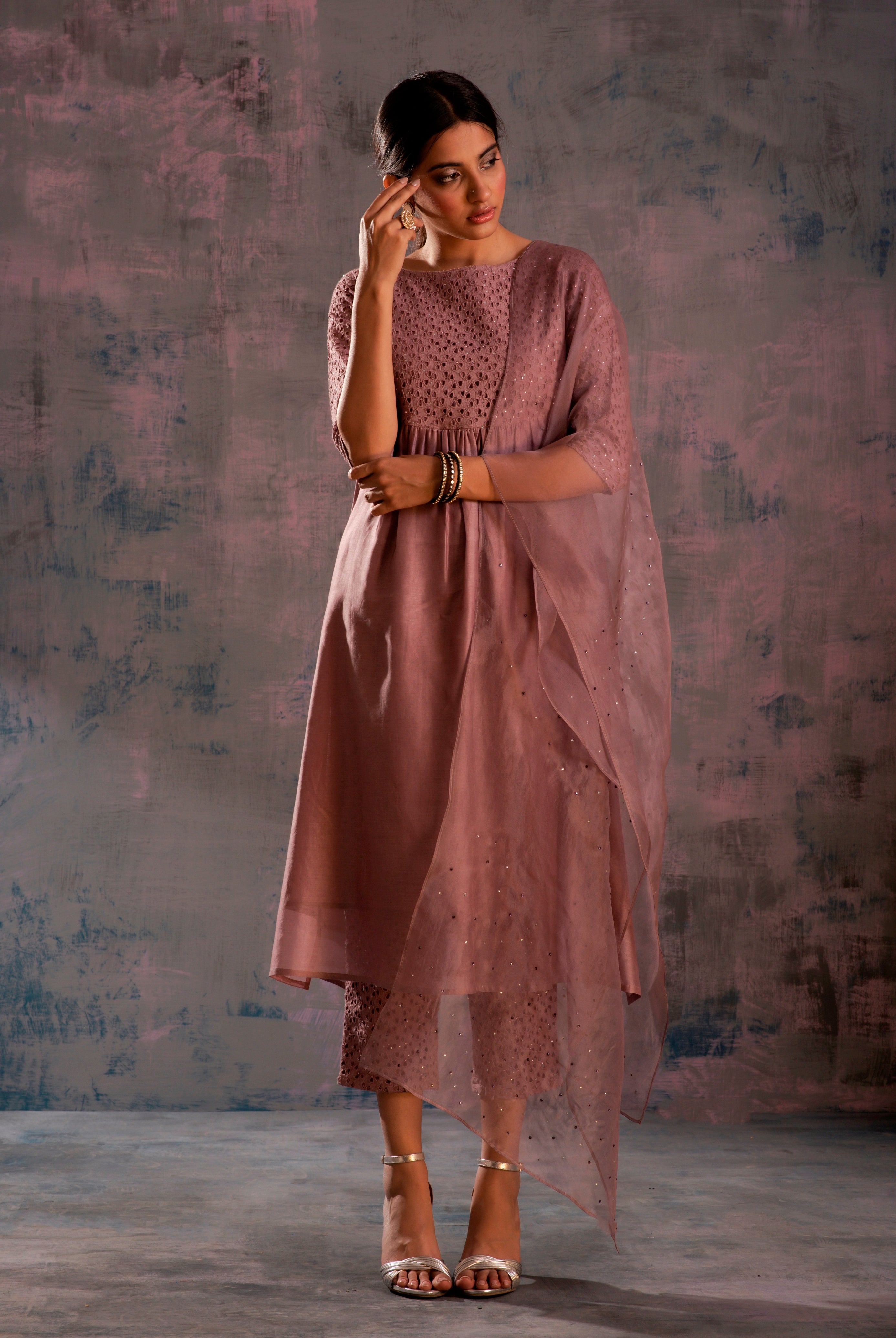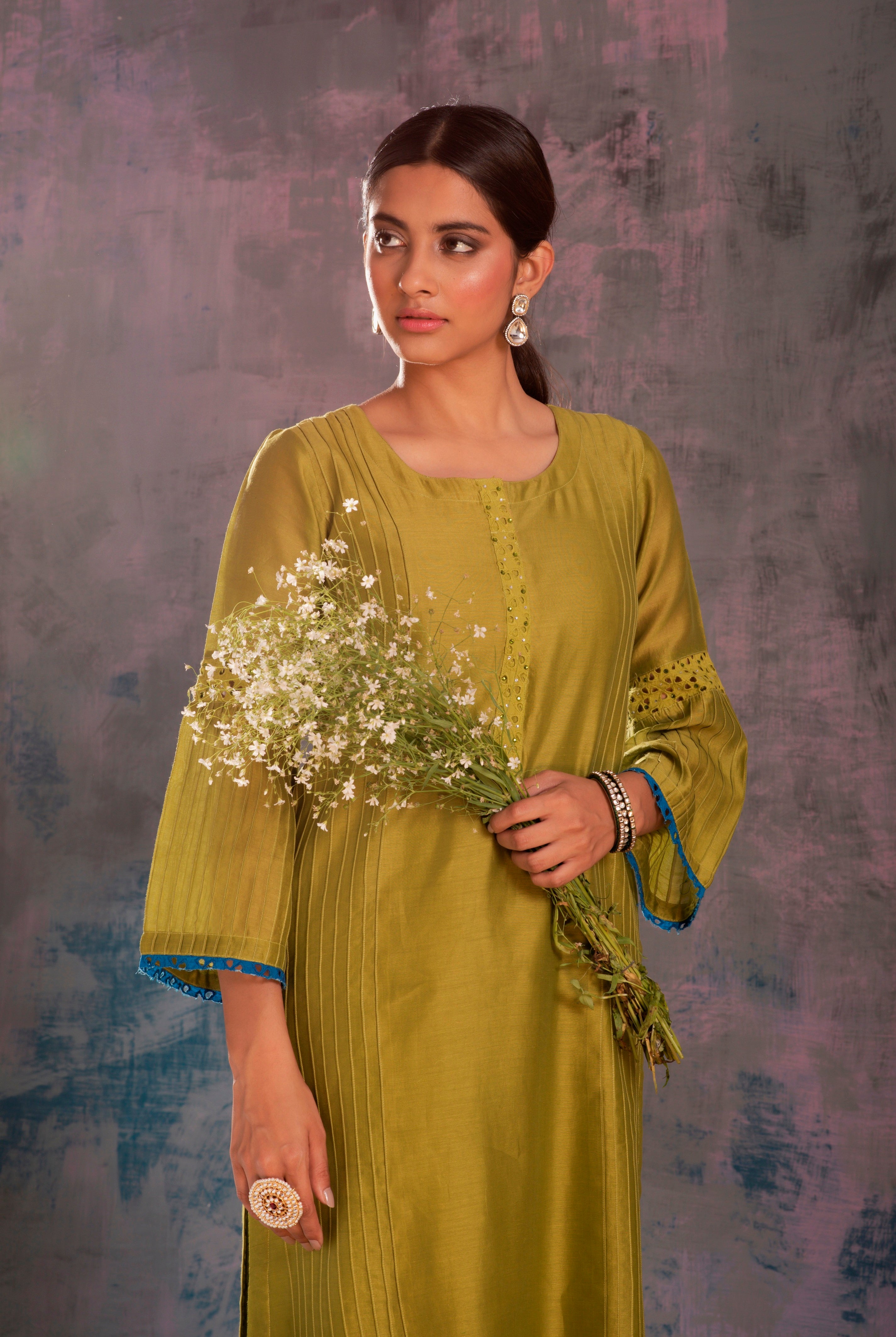 Collection elegantly blends nature's artistry with traditional craftsmanship, drawing inspiration from the grace of mulberry leaves and featuring intricate hand-embroidered Nakshi work in every piece.