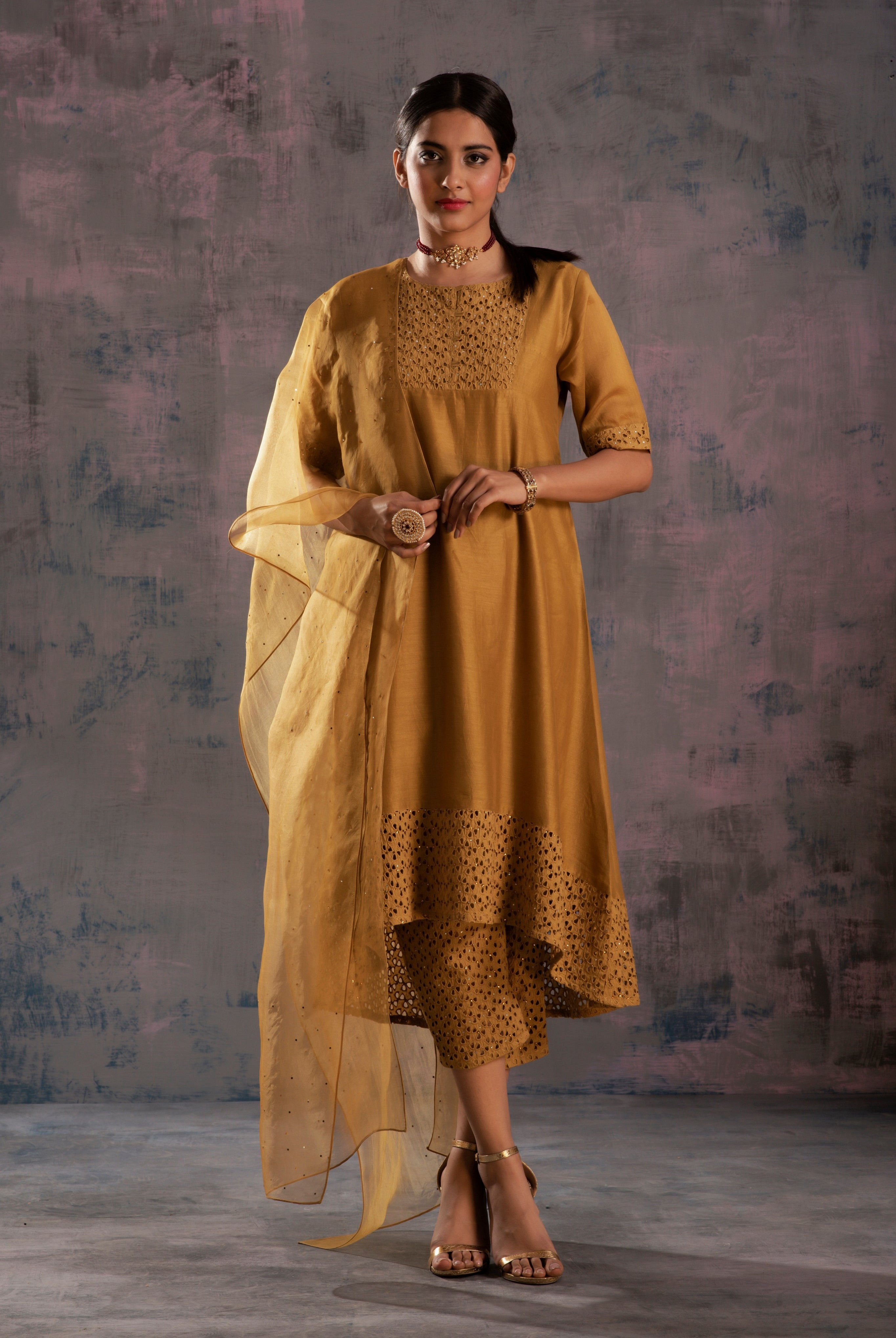 Where Gota and Tissue work intertwine to create a symphony of elegance and opulence. With designs that sparkle, this collection invites you to shine like gold and effortlessly command the spotlight, letting your natural radiance take centrestage.