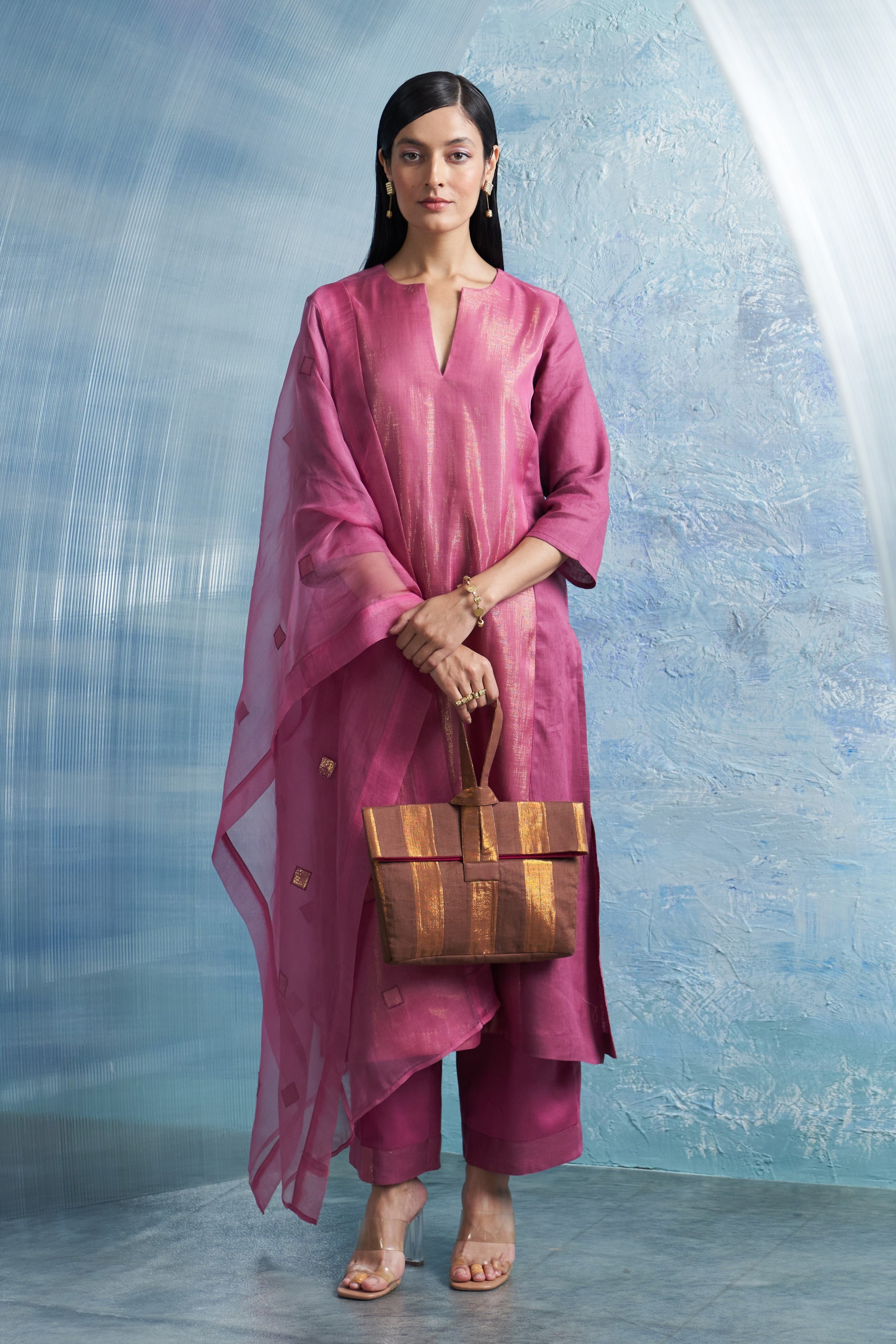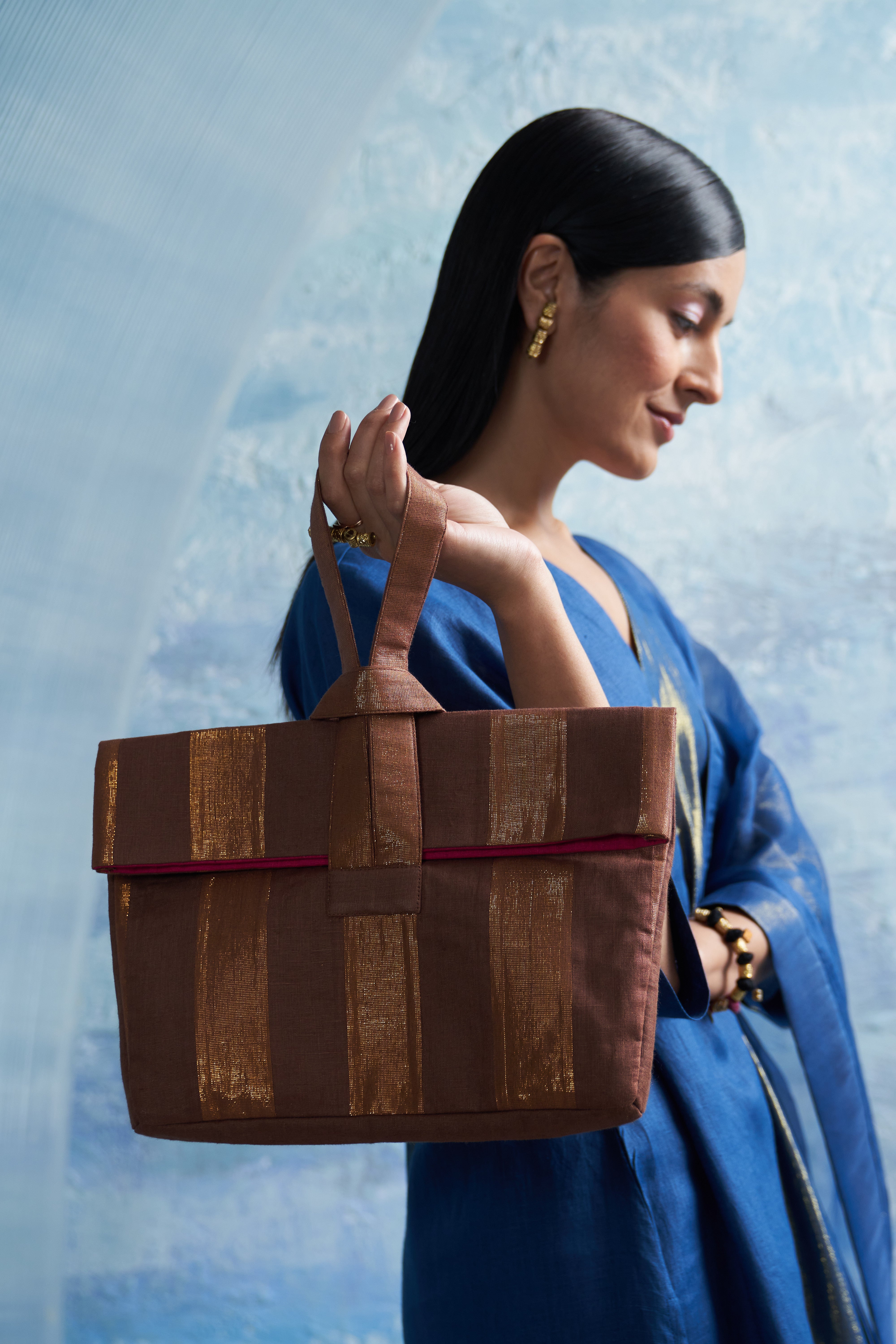 Elevate your ensemble with our Woody Brown Rectangular Bag adorned with shimmering stripes all over and featuring a stylish loop on top for comfortable carrying. This accessory is meticulously handmade to add glamour to your outfit effortlessly. Whether you're stepping out for a casual day or a special occasion. Let your style shine with this chic accessory!