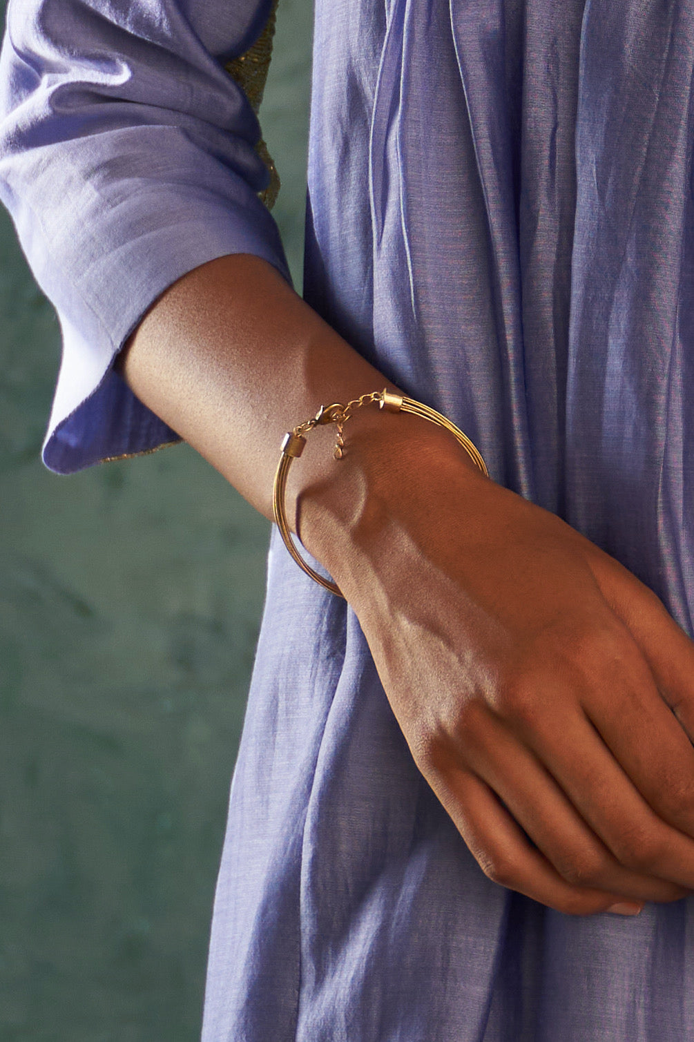 Combining modern design with a folk charm, this wired bracelet adds a unique character to the bracelet. Highlighted with colorful hanging beads that add a pop of color to your look. Set of 1