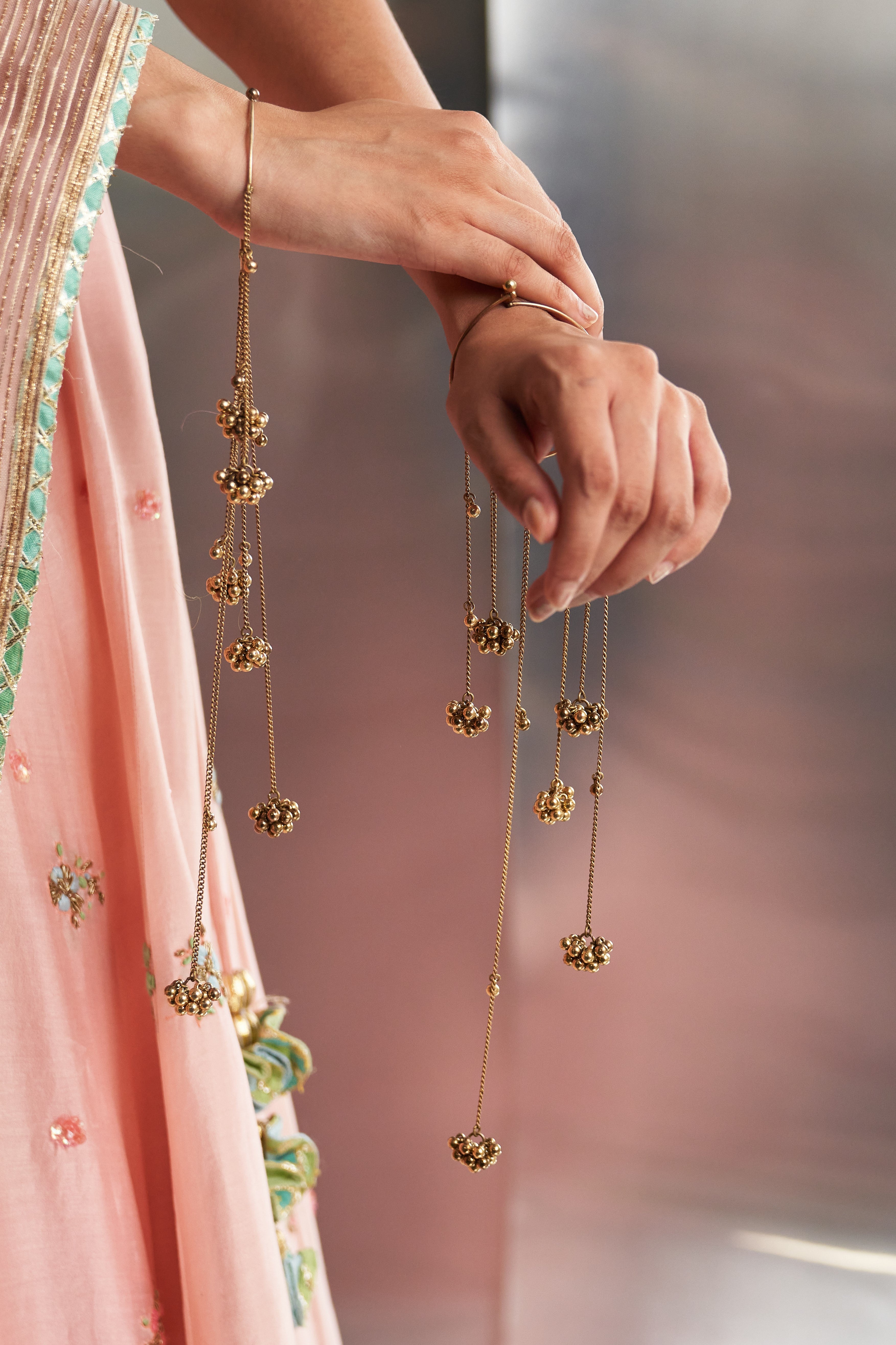 Unique Kaleera with Ghughroos – a must-own piece of jewelry that blends traditional charm with contemporary elegance. Each kaleera is intricately designed and adorned with delicate Ghunghroo, creating a melodious jingle with every movement. Perfect for weddings and festive occasions, this stunning accessory adds a touch of cultural heritage and sophistication to any ensemble.