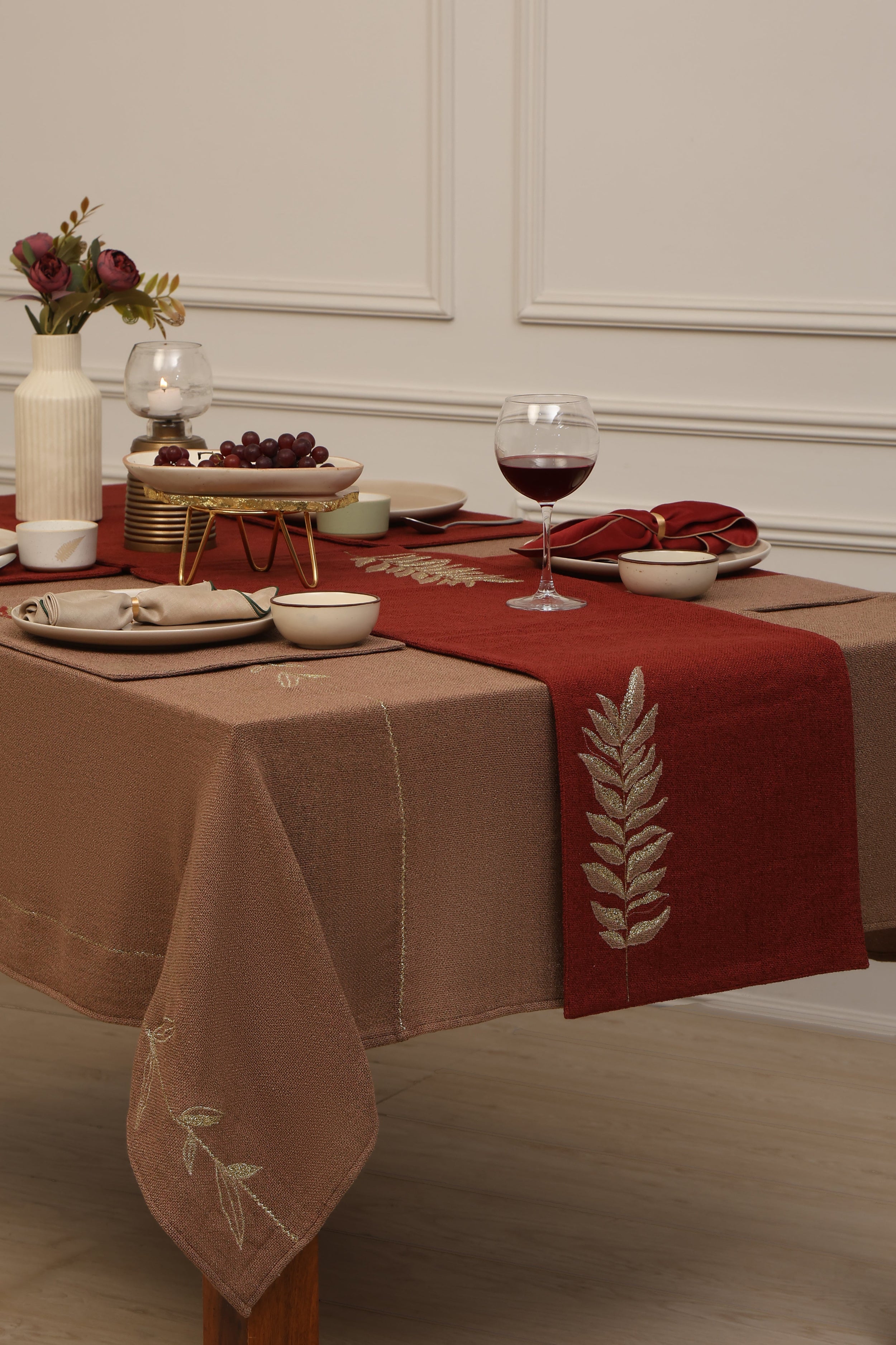 A refined table runner adorned with delicate leaf-branch embroidery along both edges, bringing natural elegance and charm to your setting