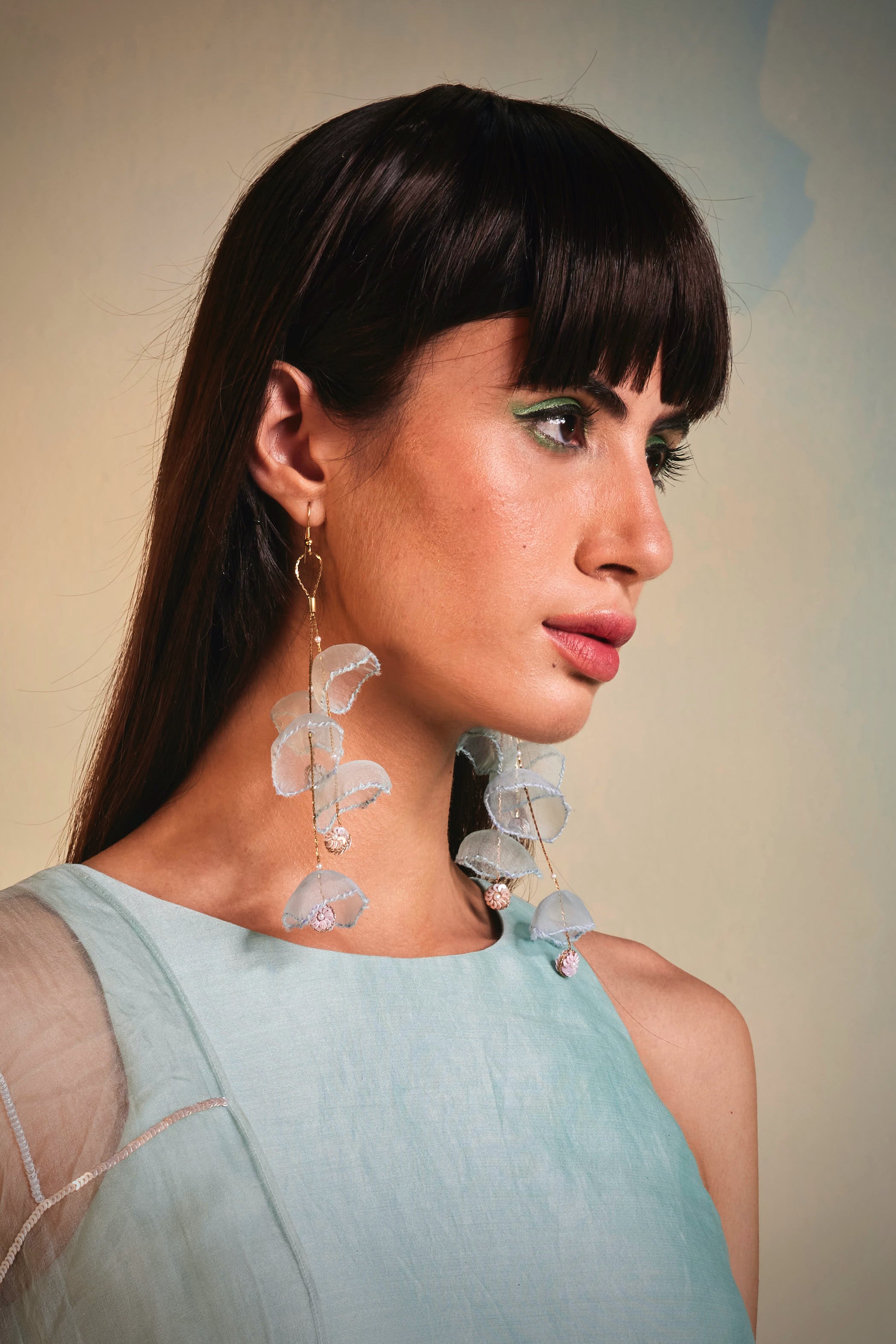 Unique hand embroidered earrings with sequin work. Delicate handcrafted, light weight and exquisite that will add to your collection of ear rings.