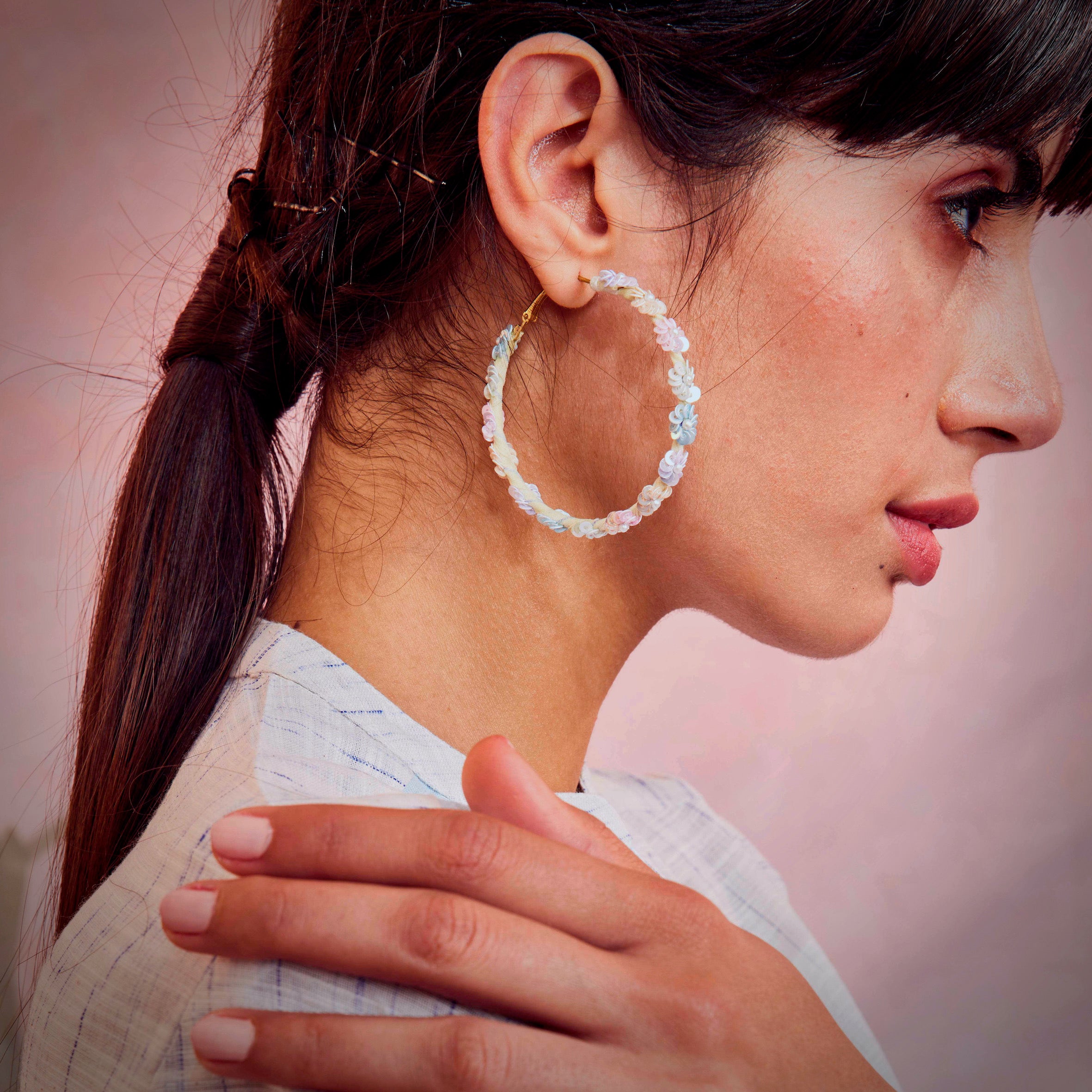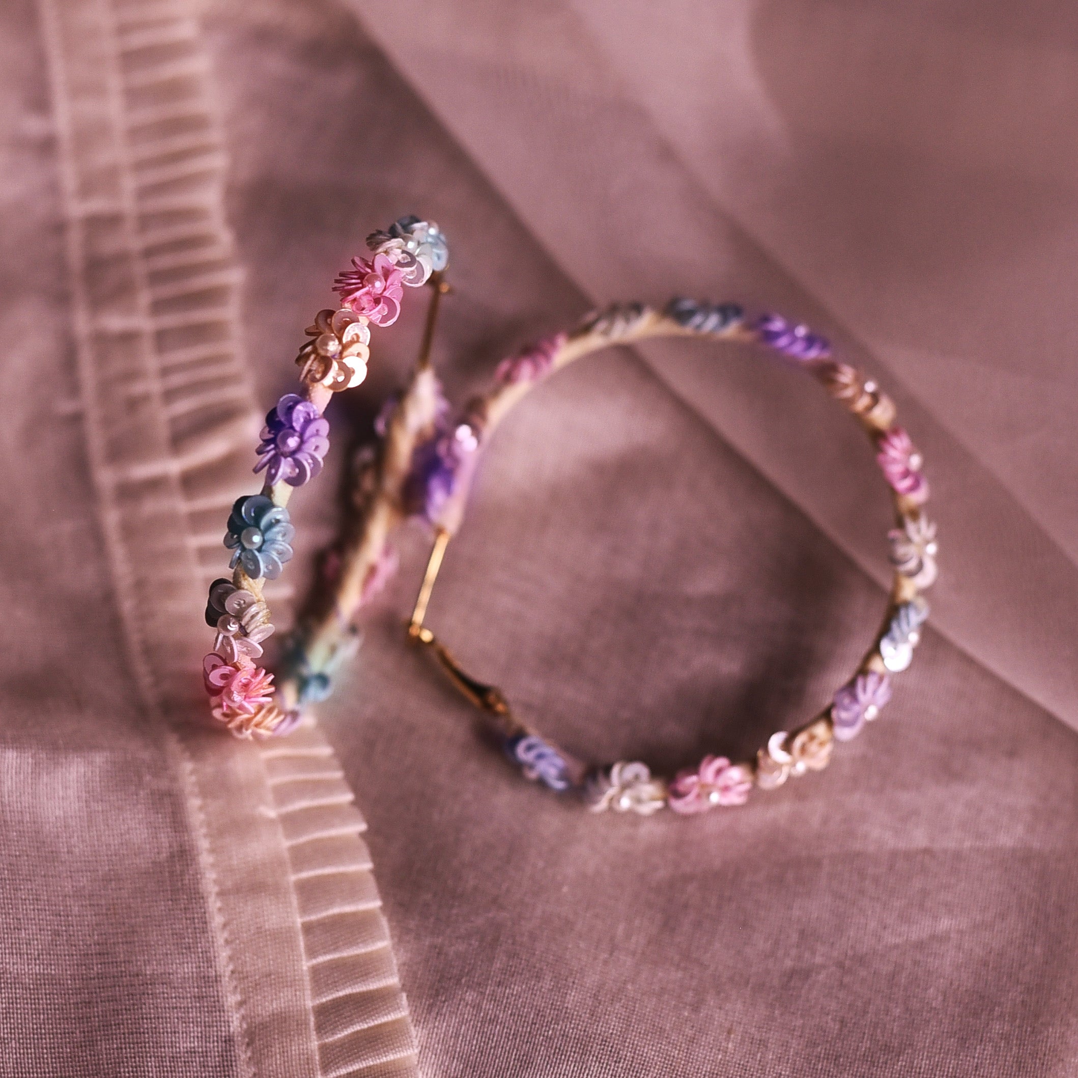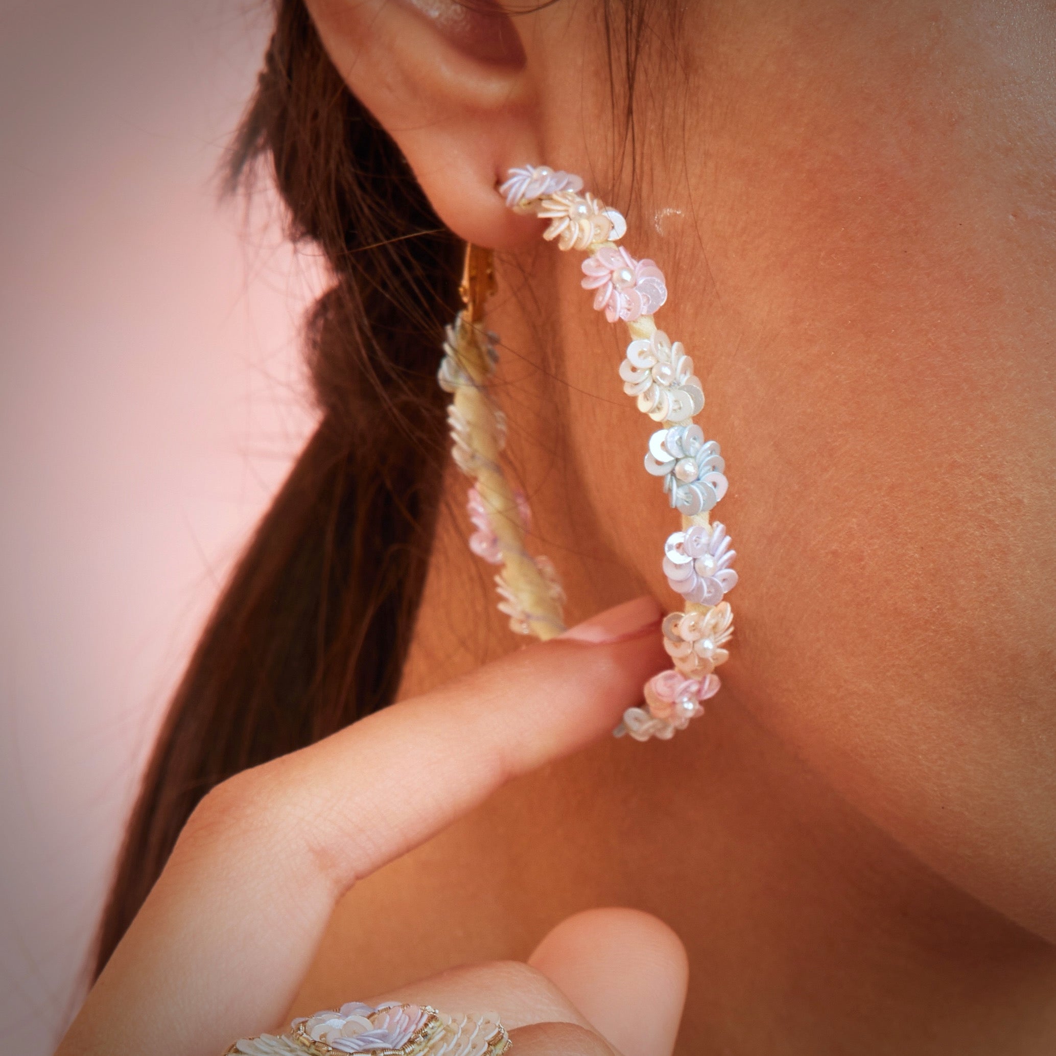 Unique hand embroidered earrings with sequin work. Delicate handcrafted, light weight and exquisite that will add to your collection of ear rings.