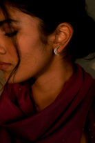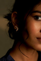 This earring features a sculpted rose-shaped stud from which a single, graceful leaf dangles. A harmonious blend of floral allure and nature-inspired elegance, it makes a striking statement while adding refined sophistication to any ensemble.