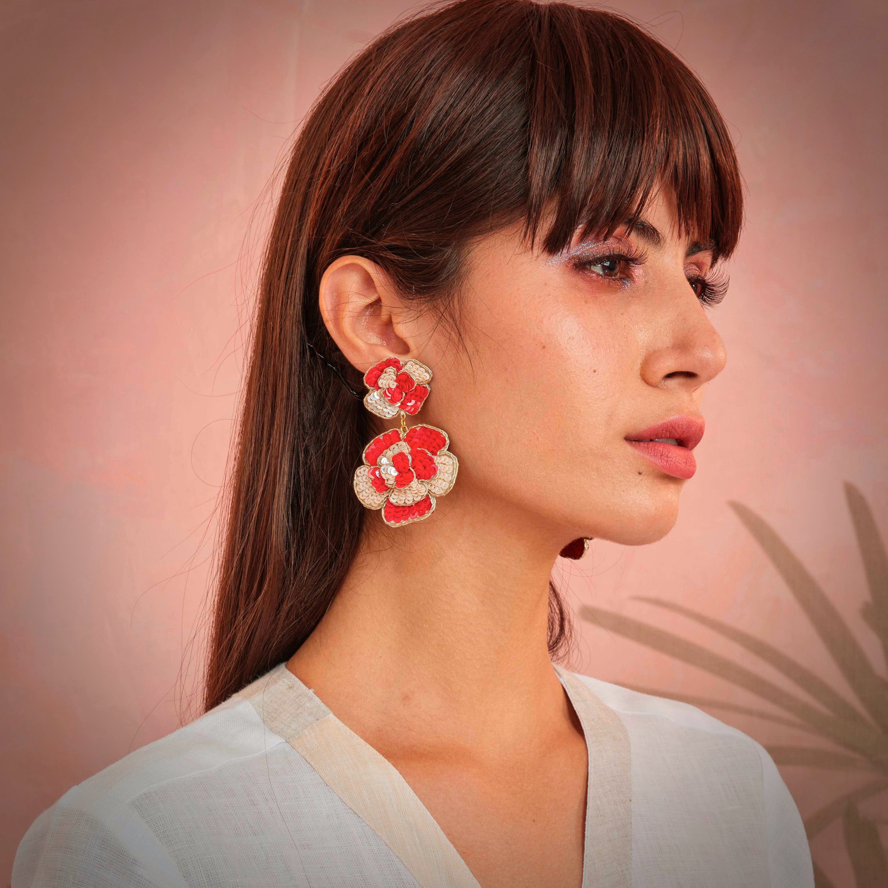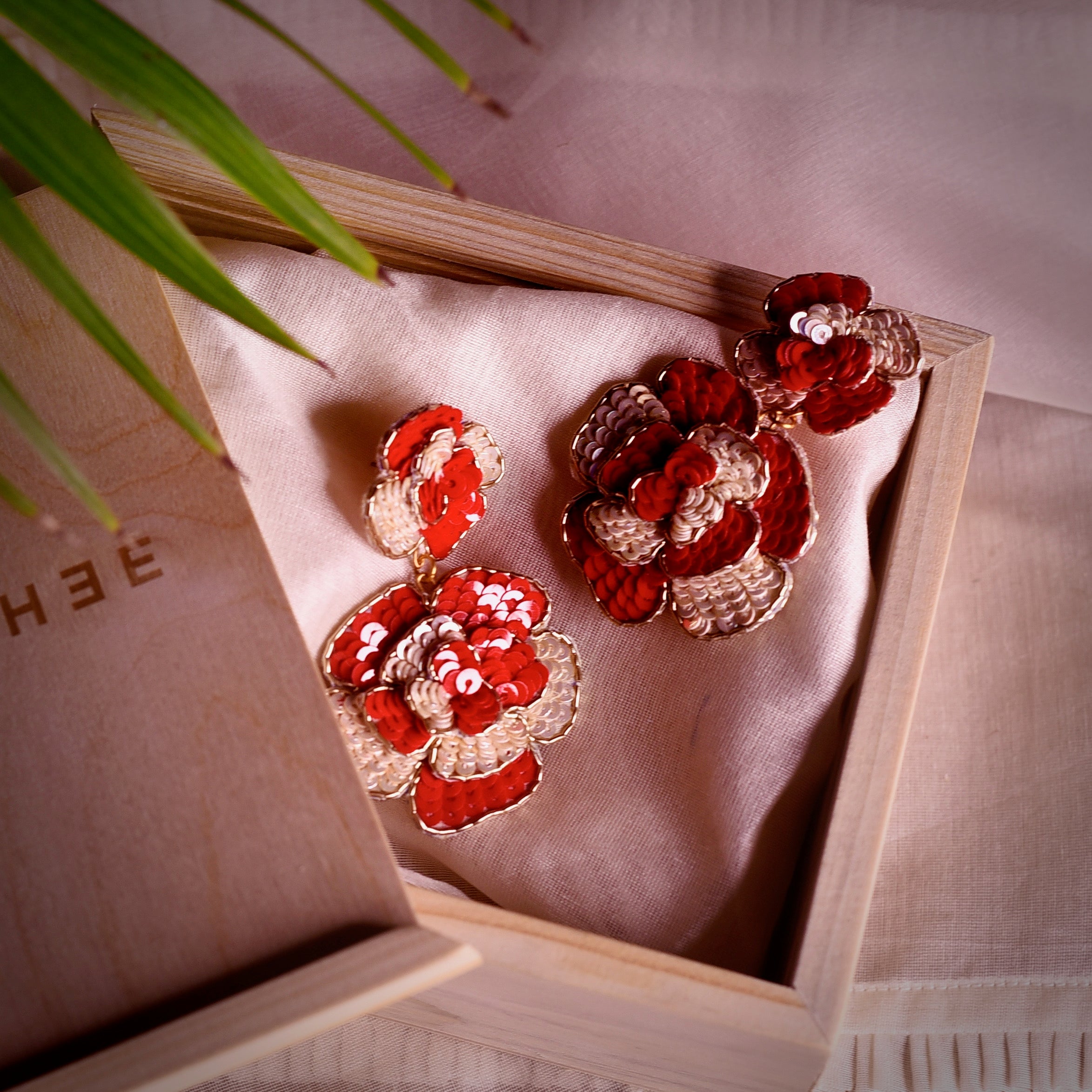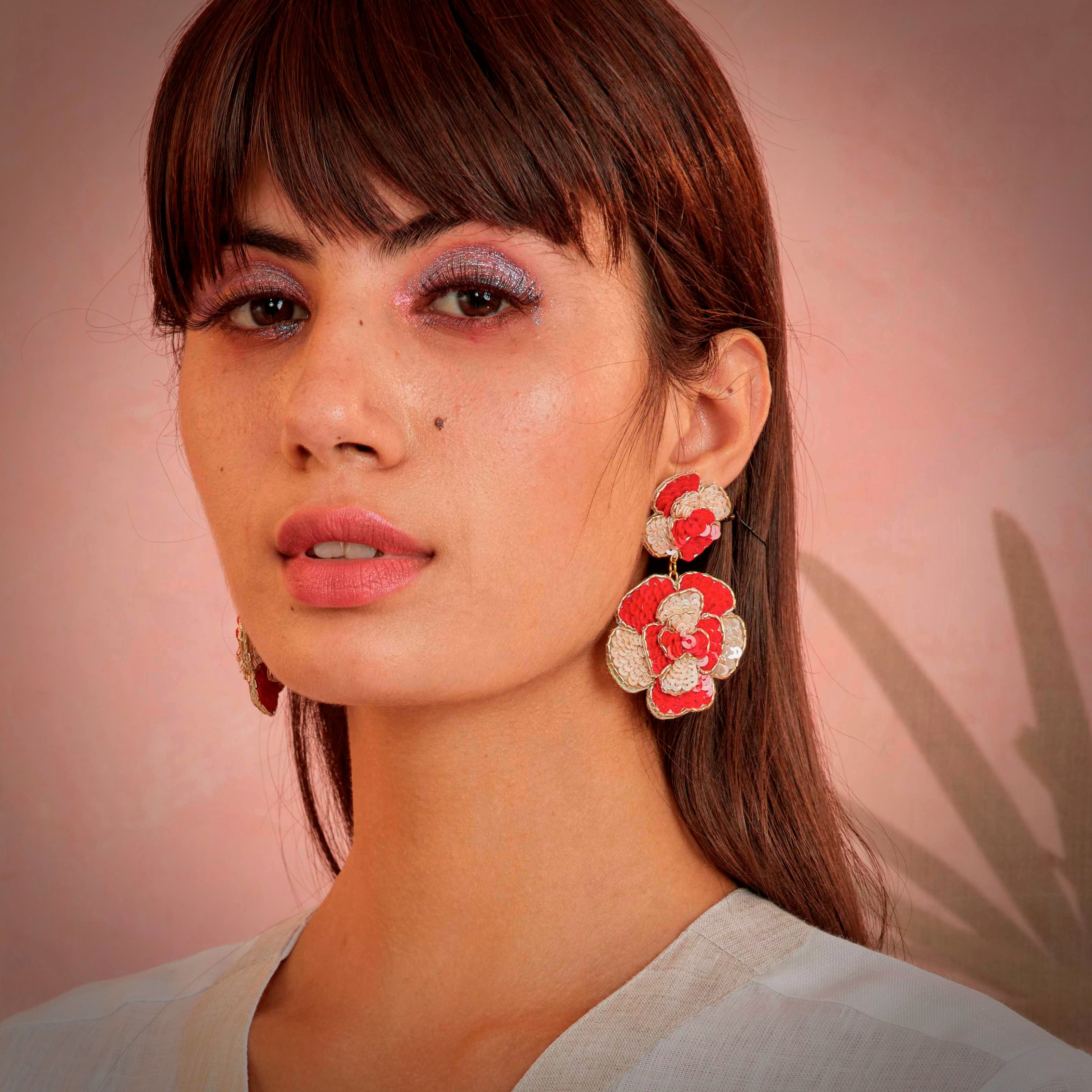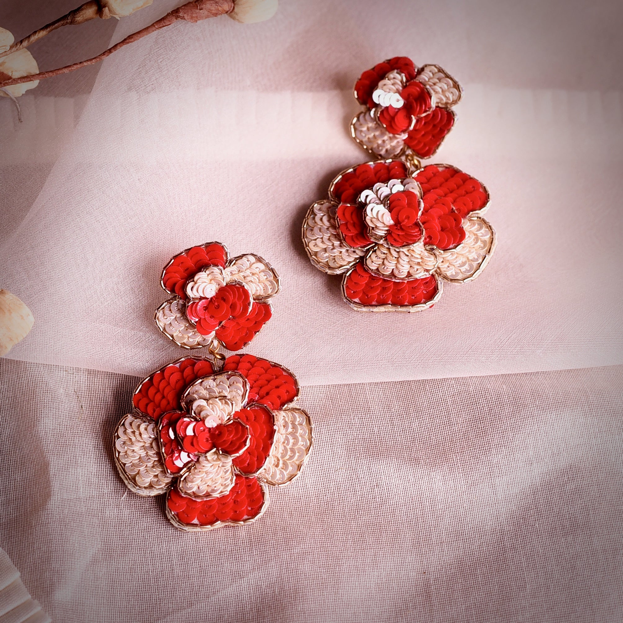 Unique hand embroidered earrings with sequin work. Delicate handcrafted, light weight and exquisite that will add to your collection of ear rings.