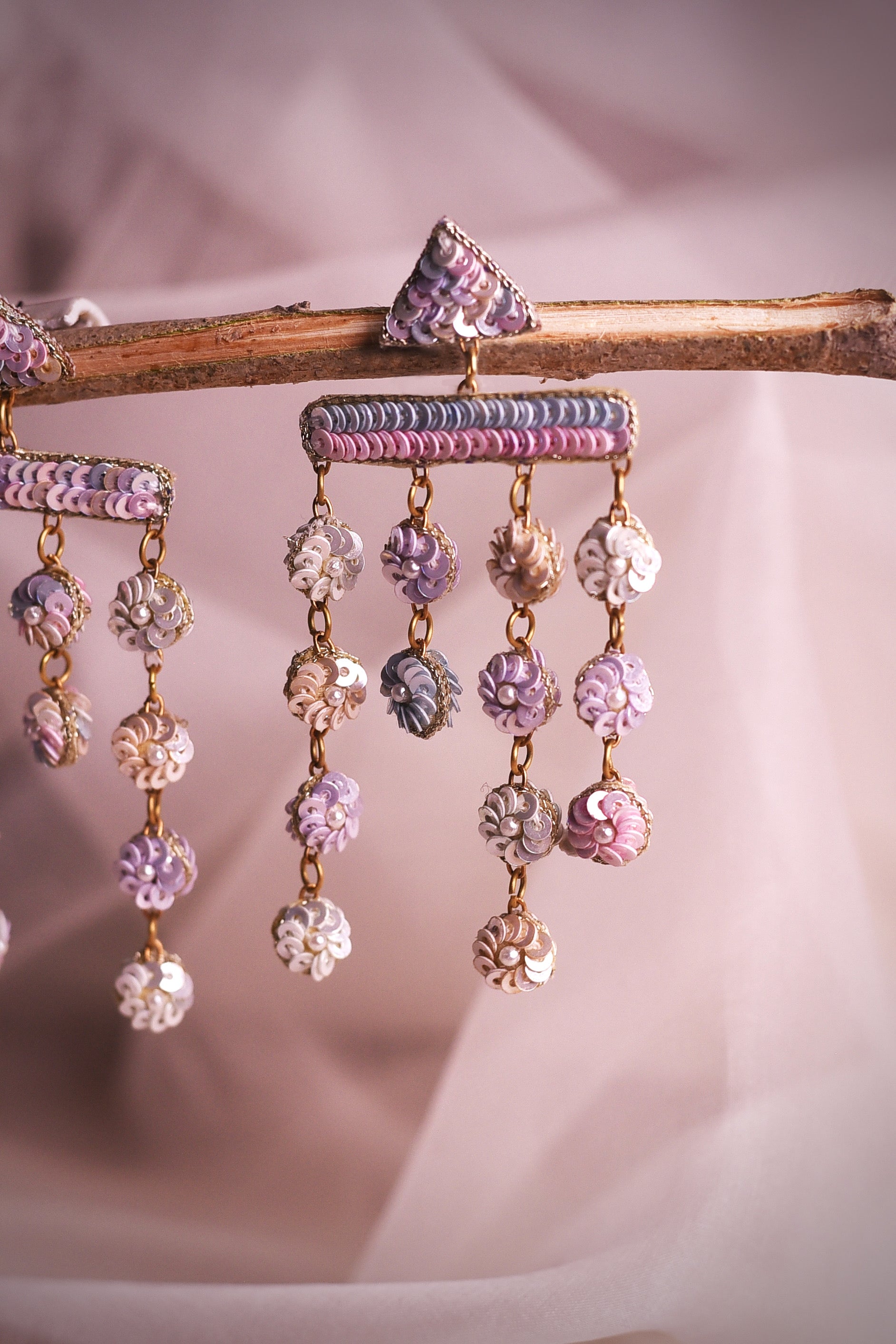 Unique hand embroidered earrings with sequin work. Delicate handcrafted, light weight and exquisite that will add to your collection of ear rings.