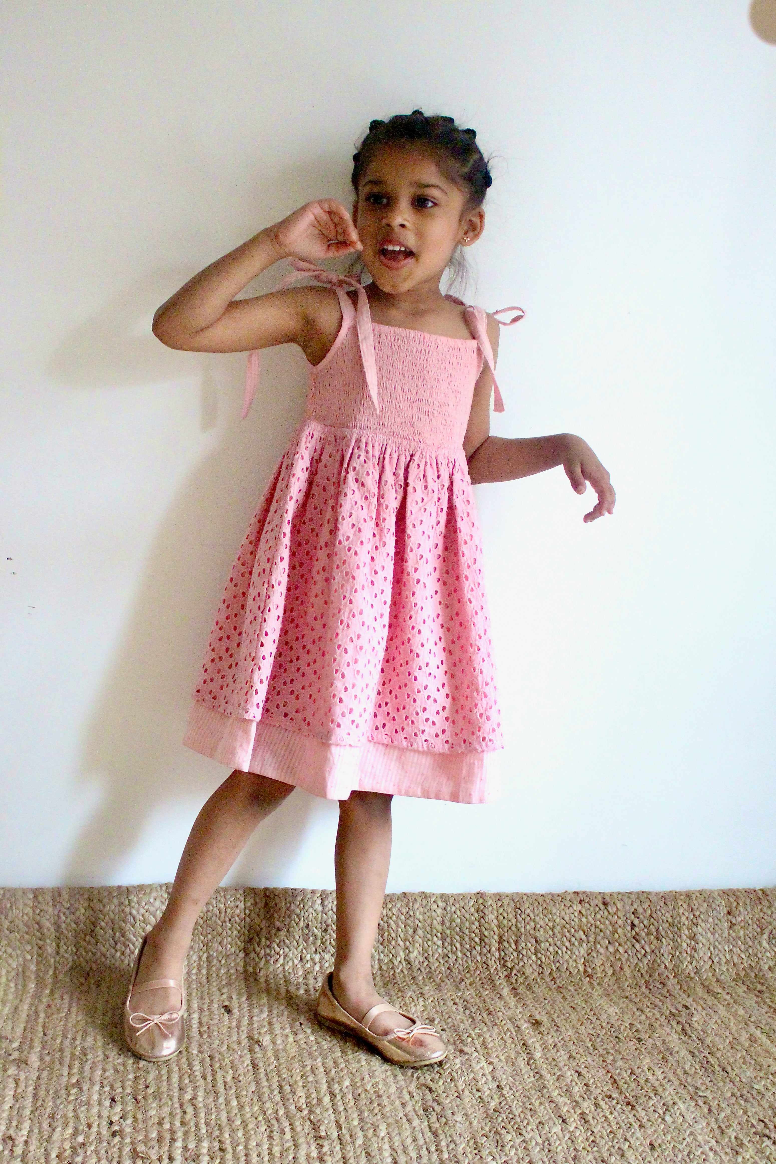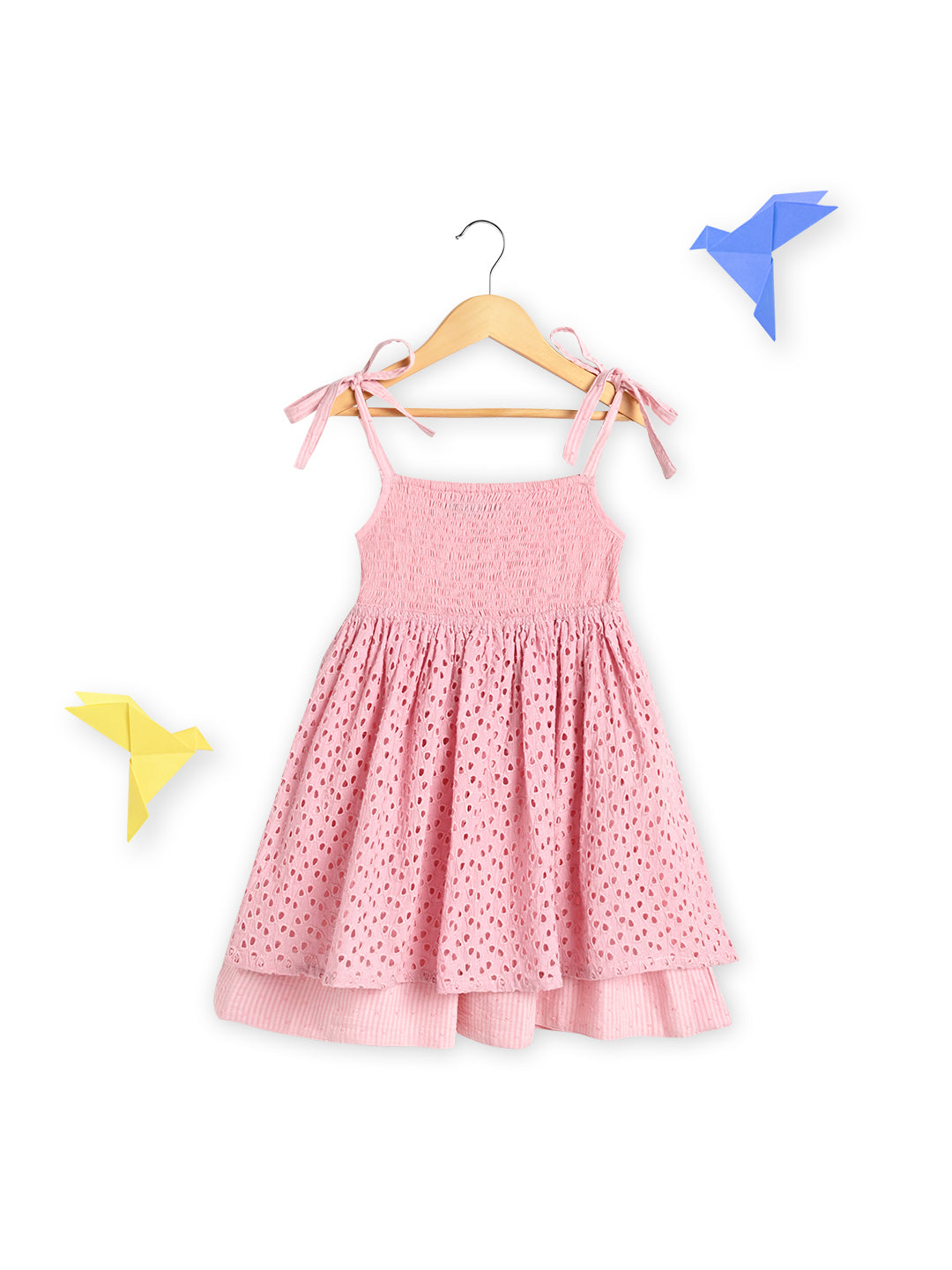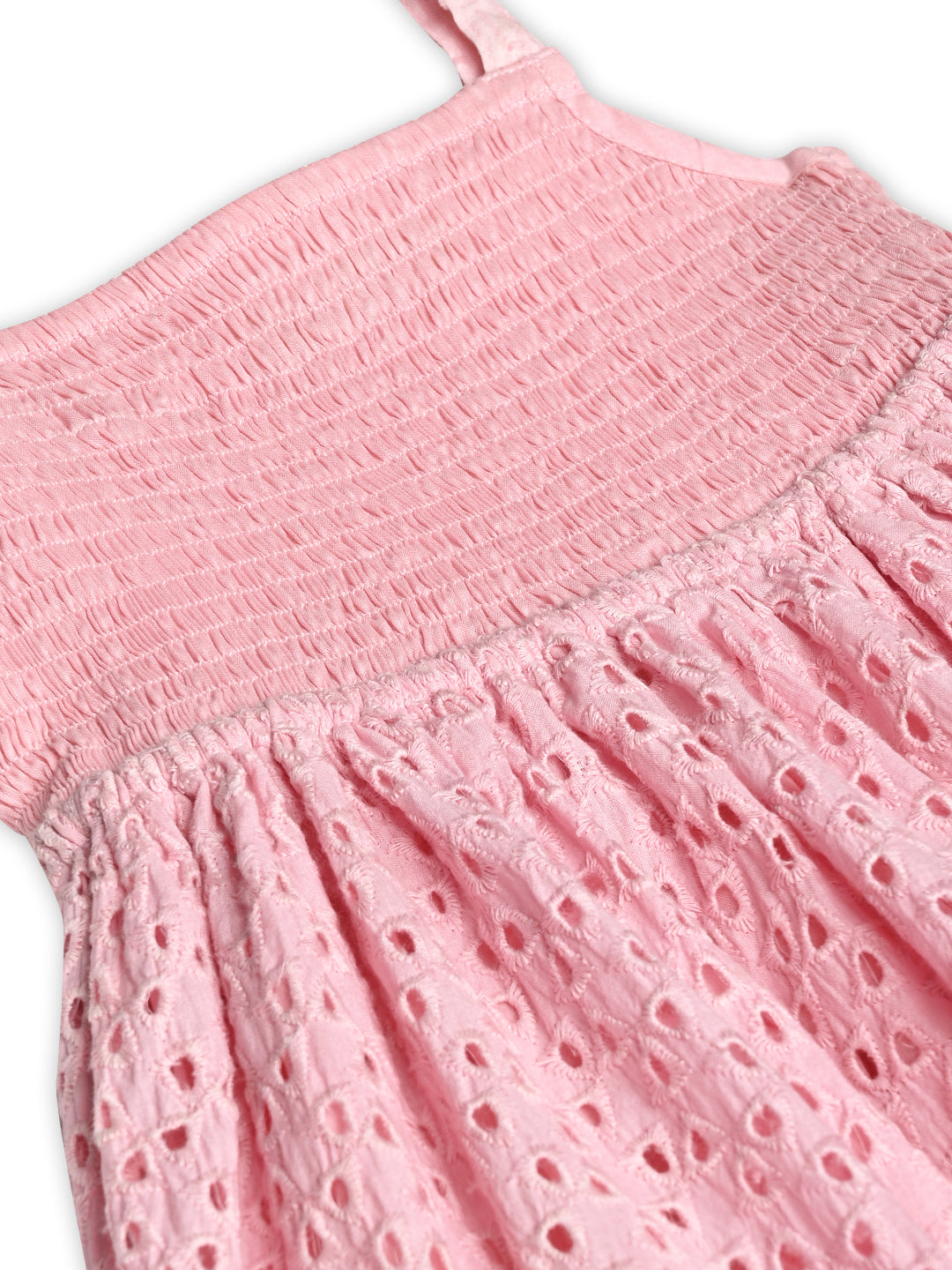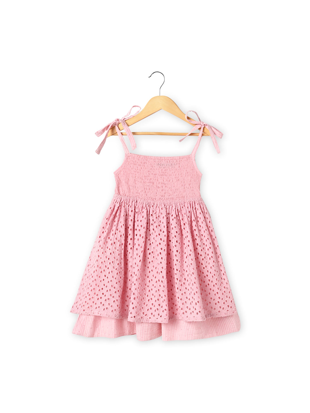 Girls Pink Tie-up Smocking Dress