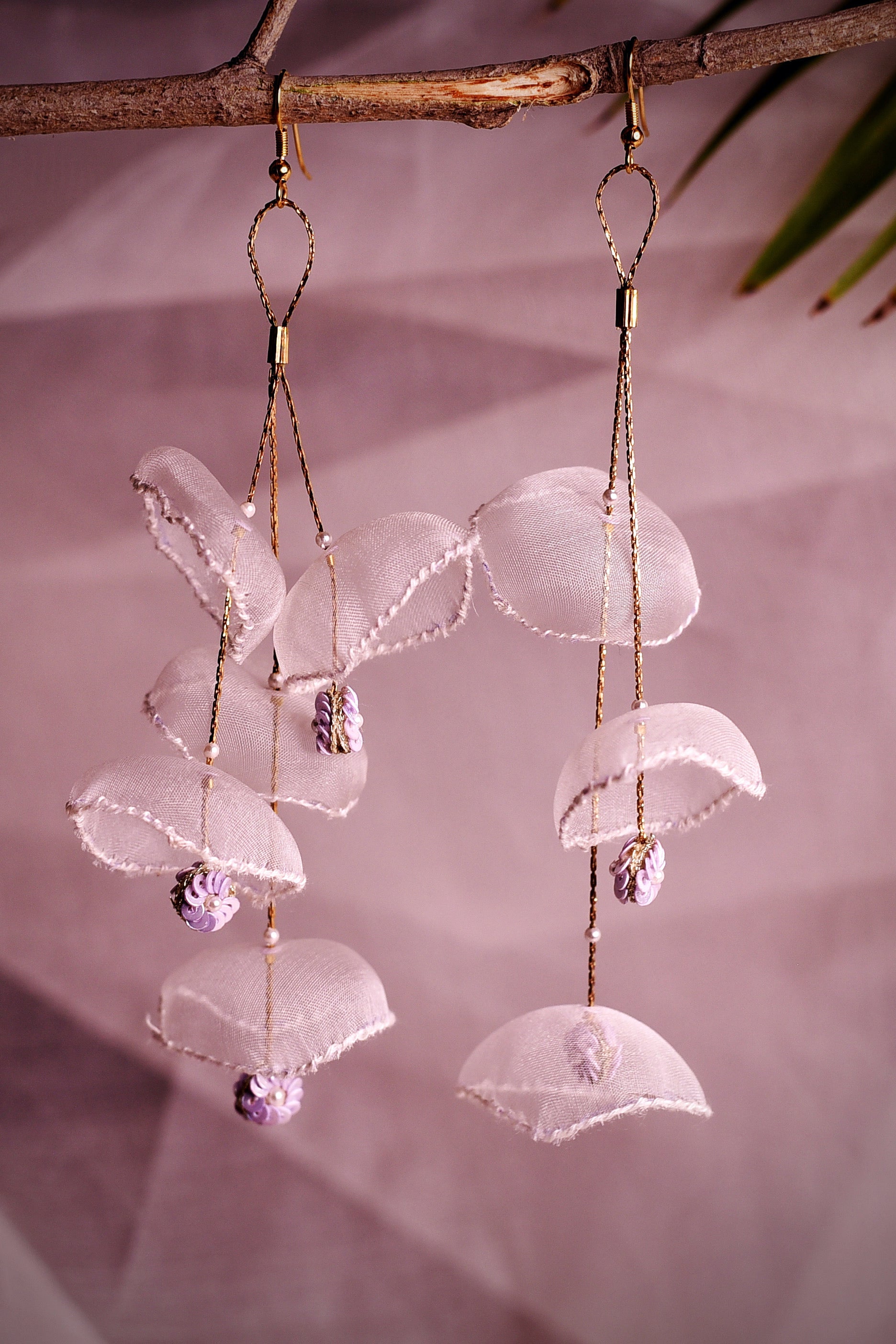 Unique hand embroidered earrings with sequin work. Delicate handcrafted, light weight and exquisite that will add to your collection of ear rings.