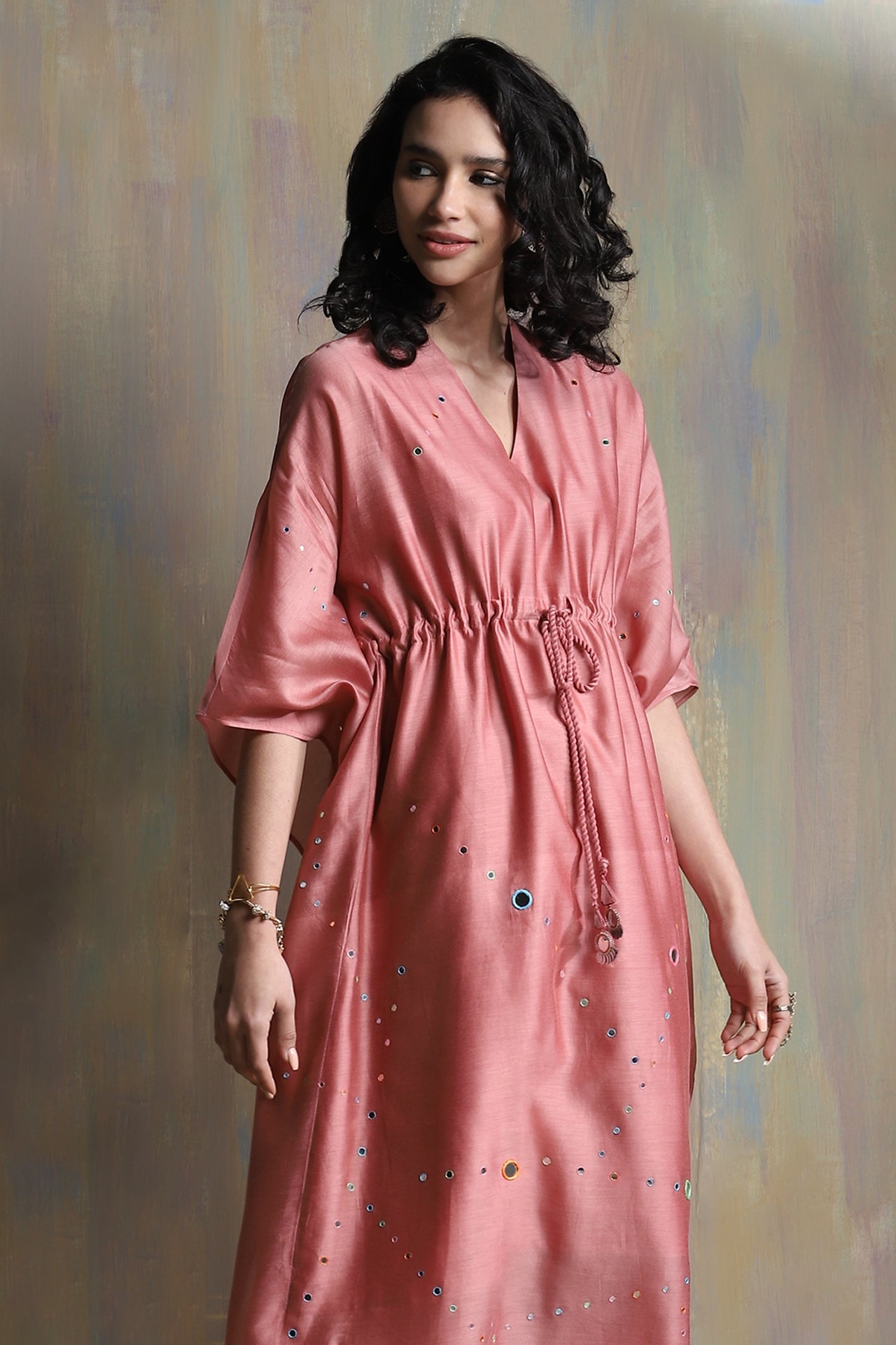Chanderi Kaftan With Mirror - Set of 1