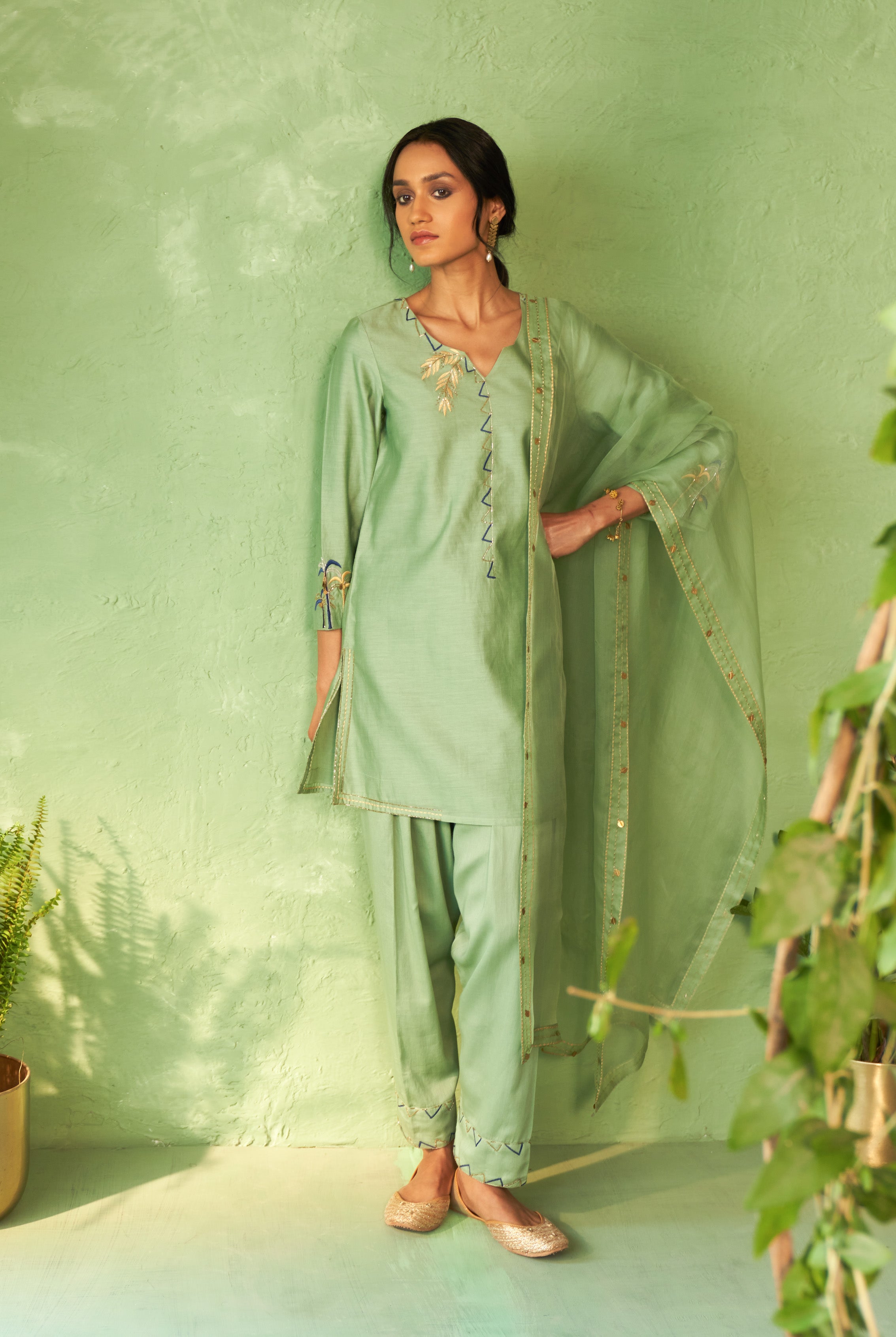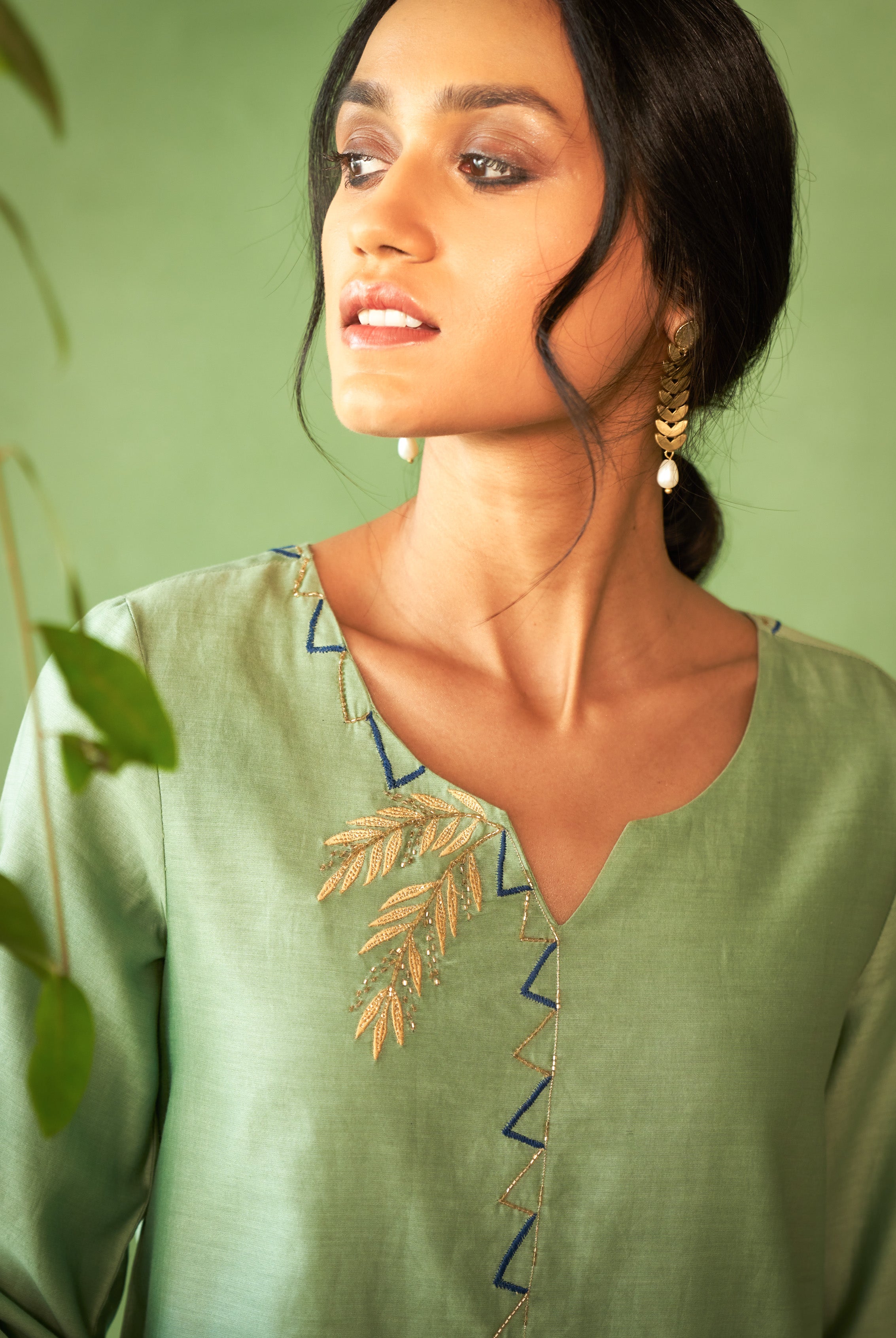 Collection elegantly blends nature's artistry with traditional craftsmanship, drawing inspiration from the grace of mulberry leaves and featuring intricate hand-embroidered Nakshi work in every piece.