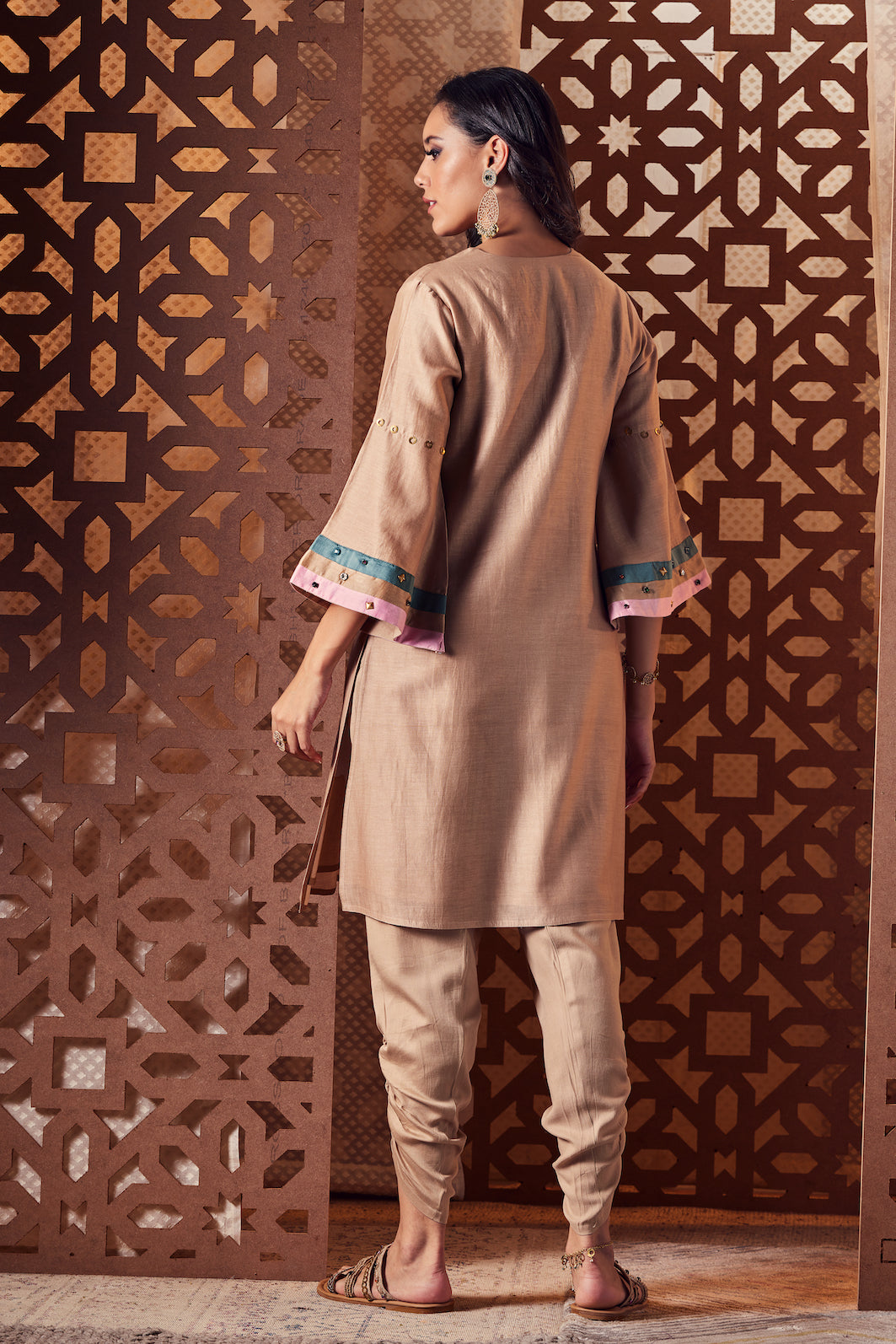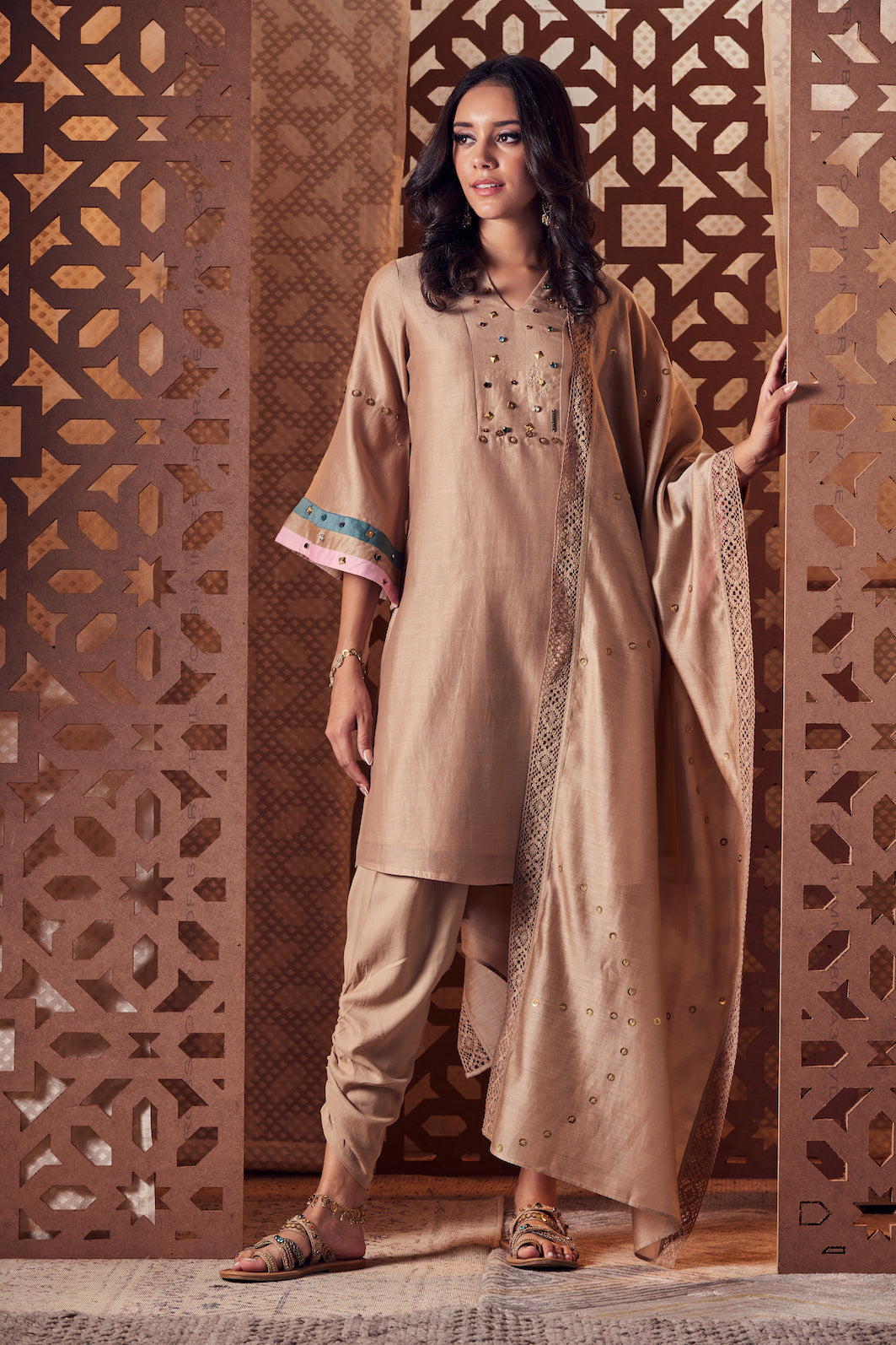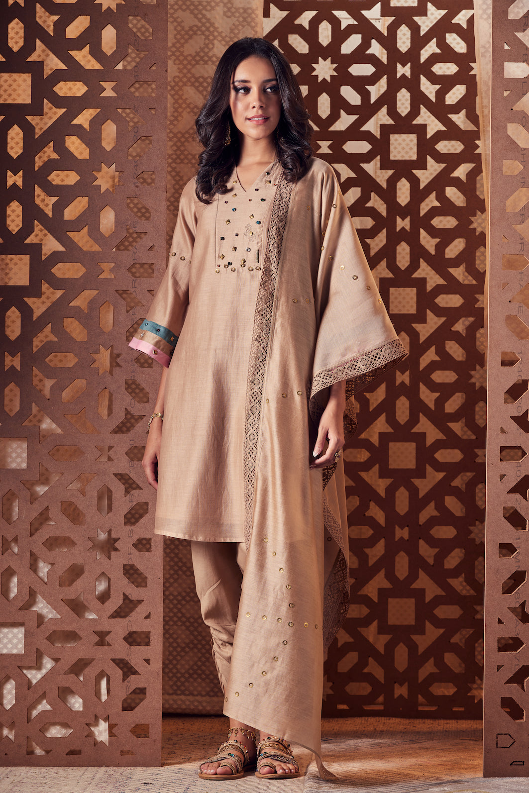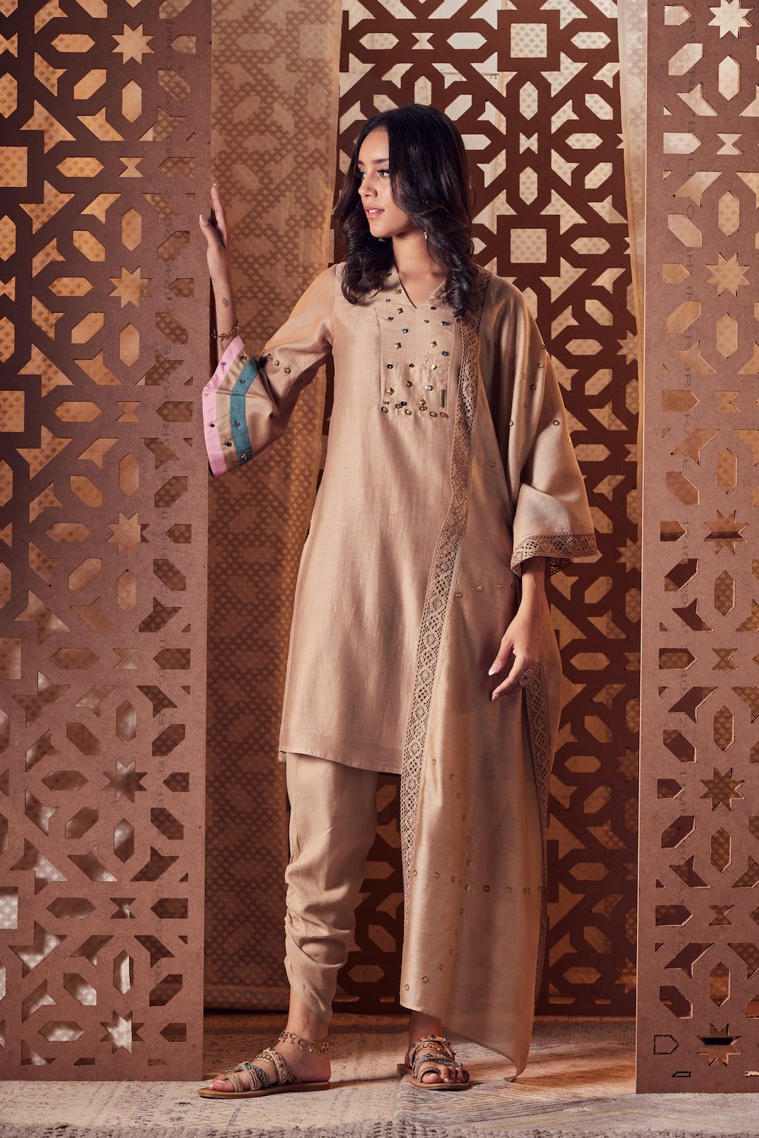 Chanderi Bell Sleeve Kurta with Salwar - Size S