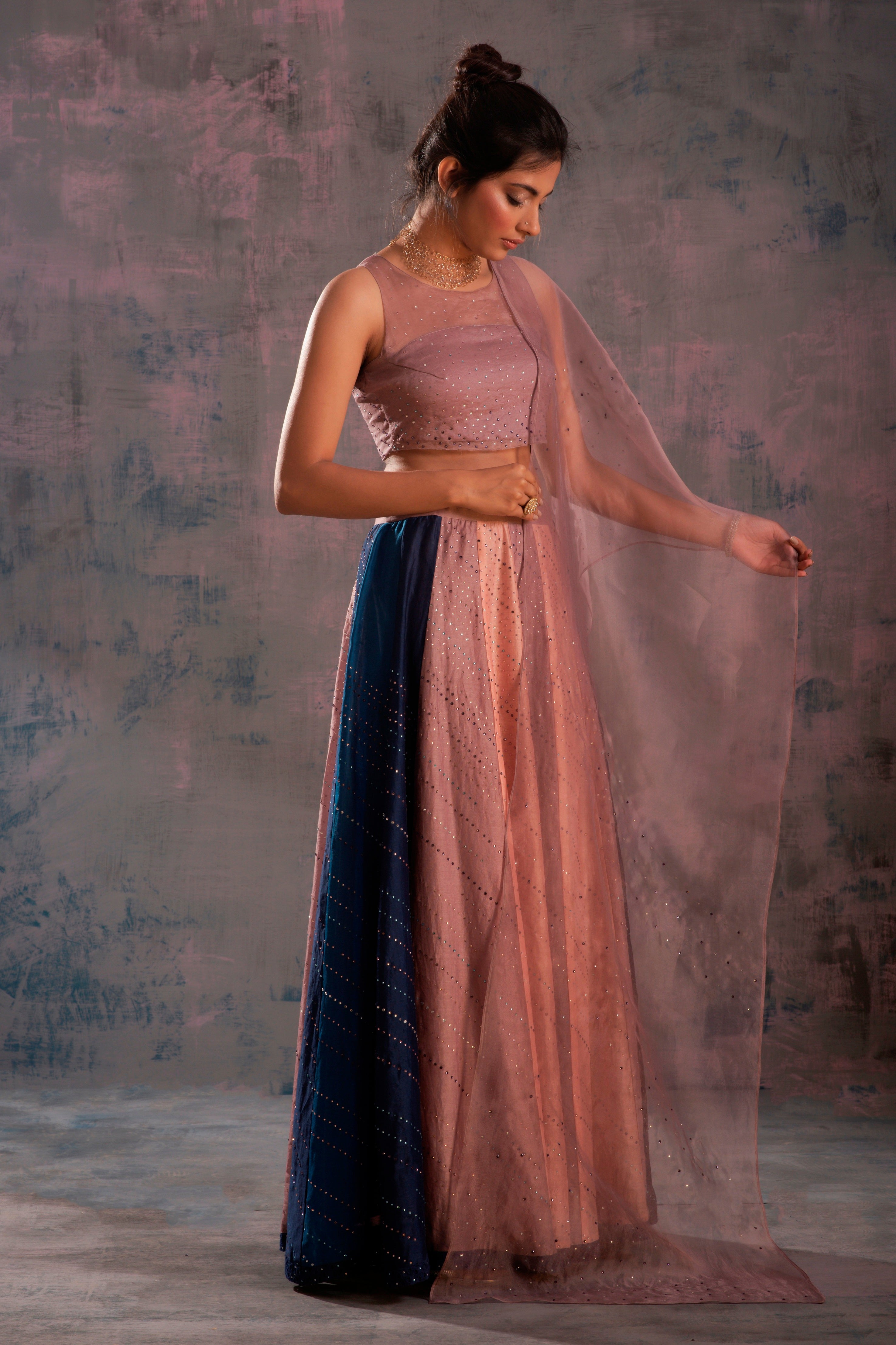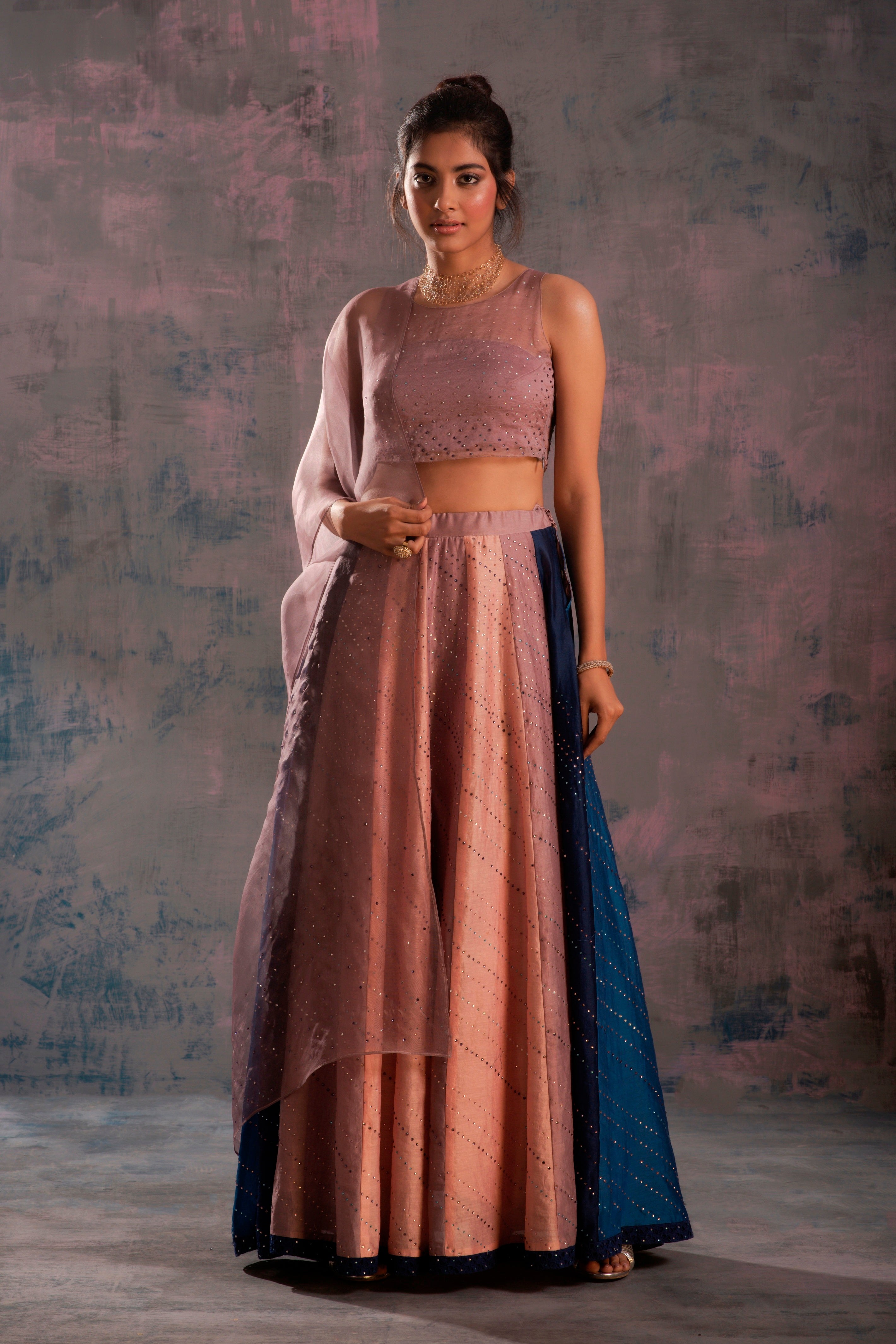 Swarovski Twilight Multicolour Lehenga - Set of 3