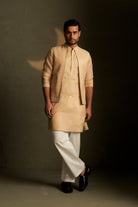 Golden Beige Long Kurta Set with Short Jacket