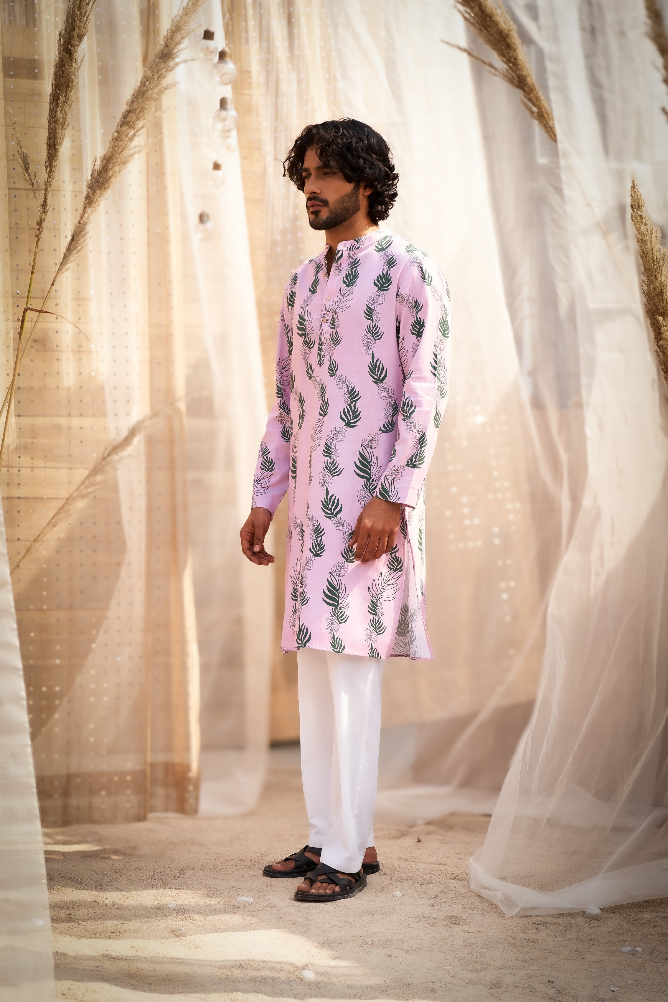 Make a striking statement with this kurta set featuring a charming leaf print. The kurta combines modern aesthetics with traditional elegance, while the straight pants add unmatched comfort and ease.