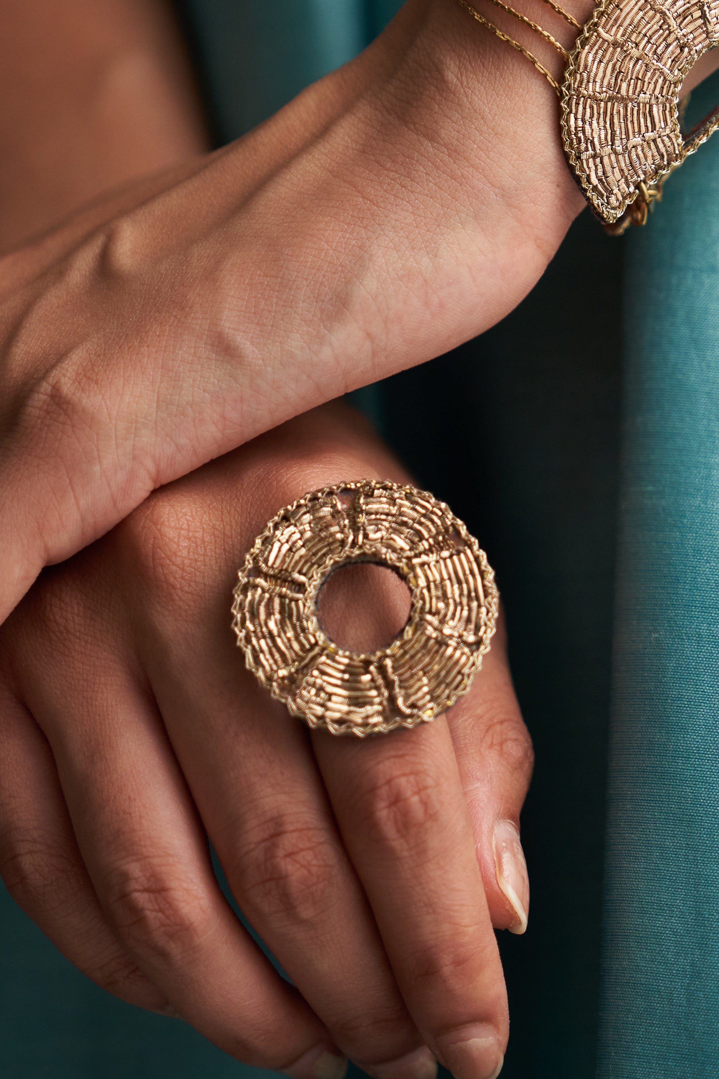 Handmade using nakshi in gold finish, this classic is a lightweight and unique piece to add to your jewelry collection.