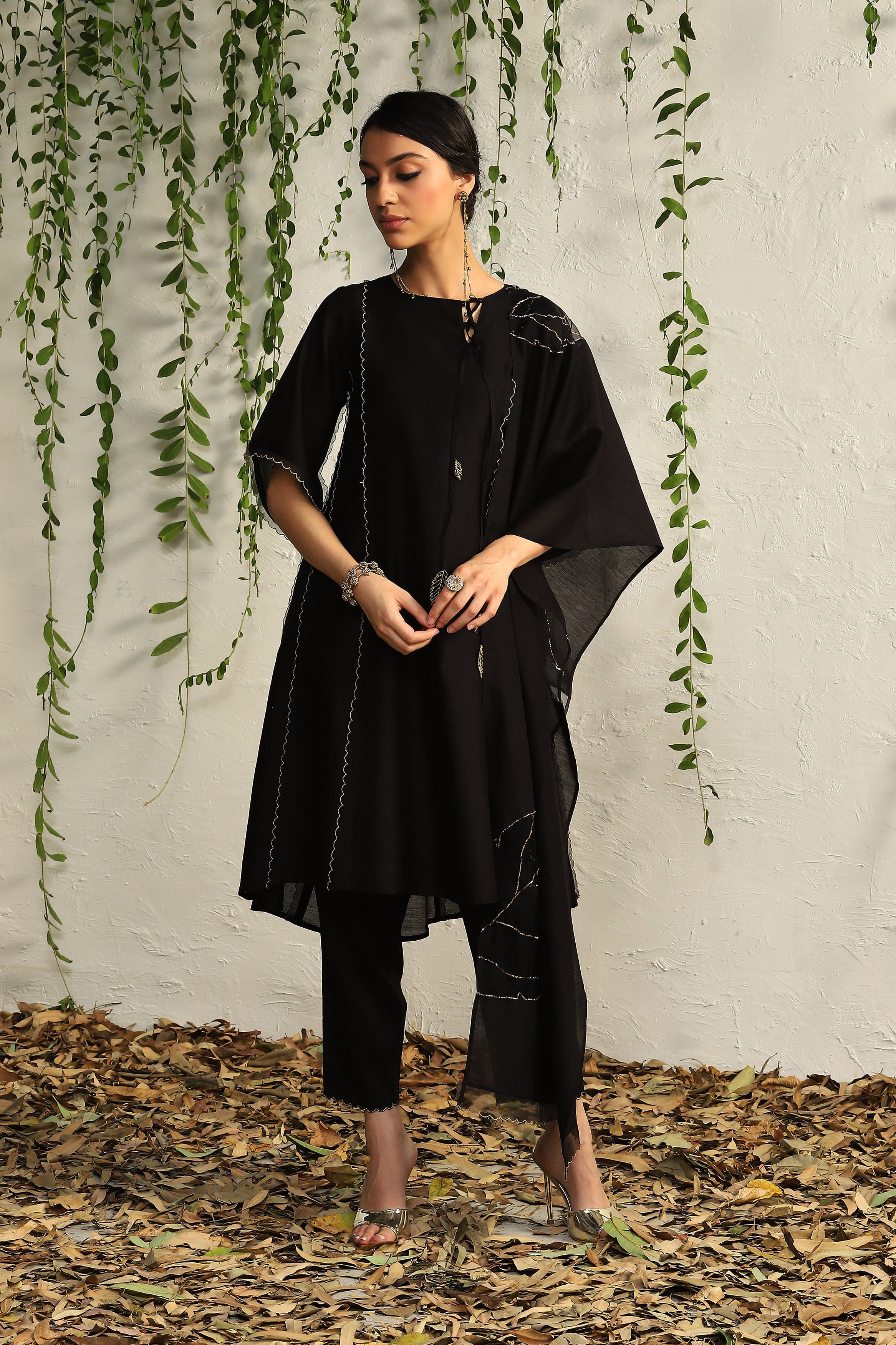 Black Chanderi Tie-up Kurta Set (Dupatta Optional)