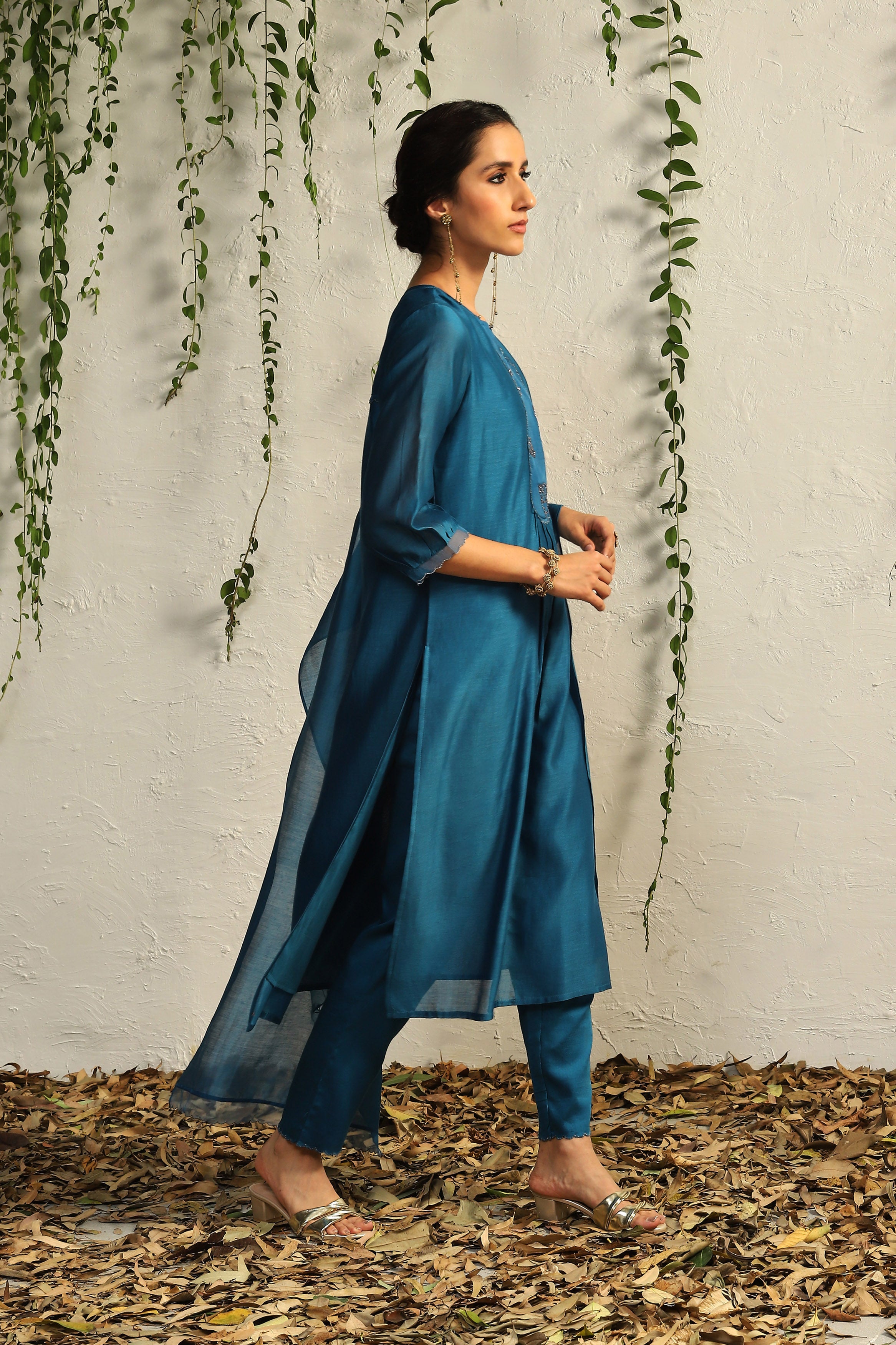 True Blue Chanderi Flowy Kurta Set