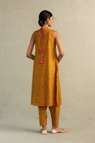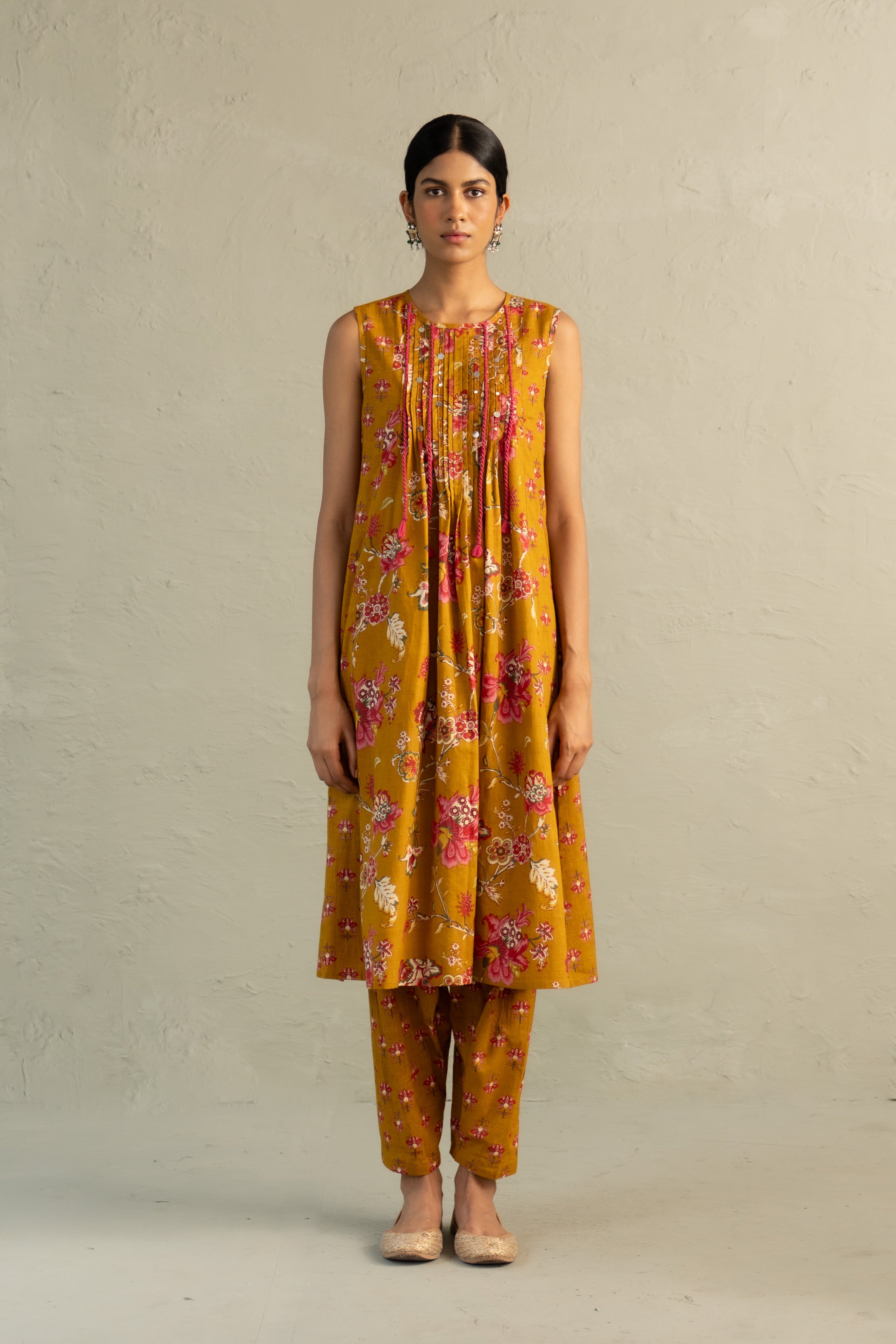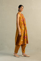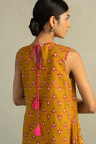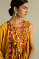 Mustard Phool Dori Pintuck Sleeveless Kurta Salwar Set