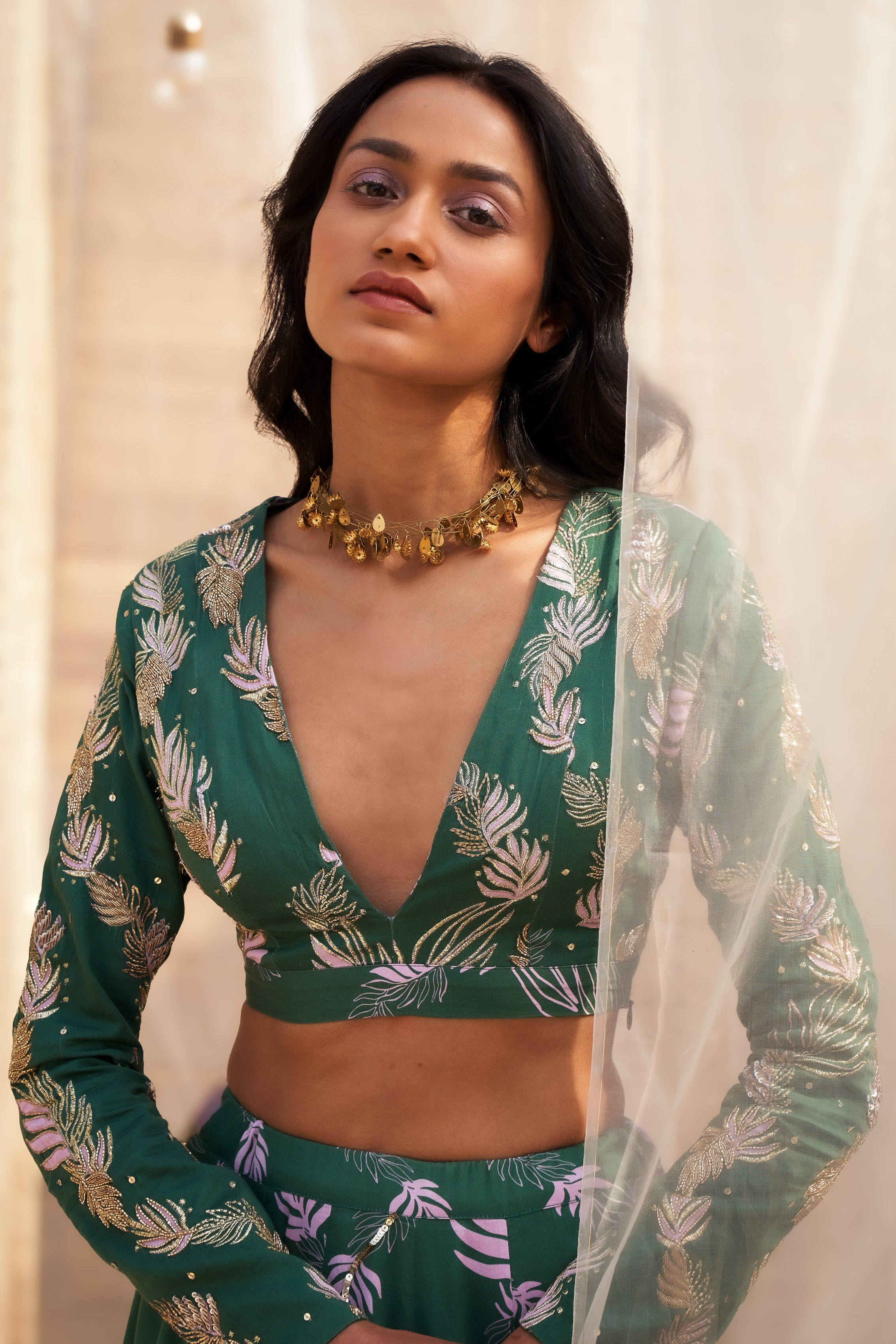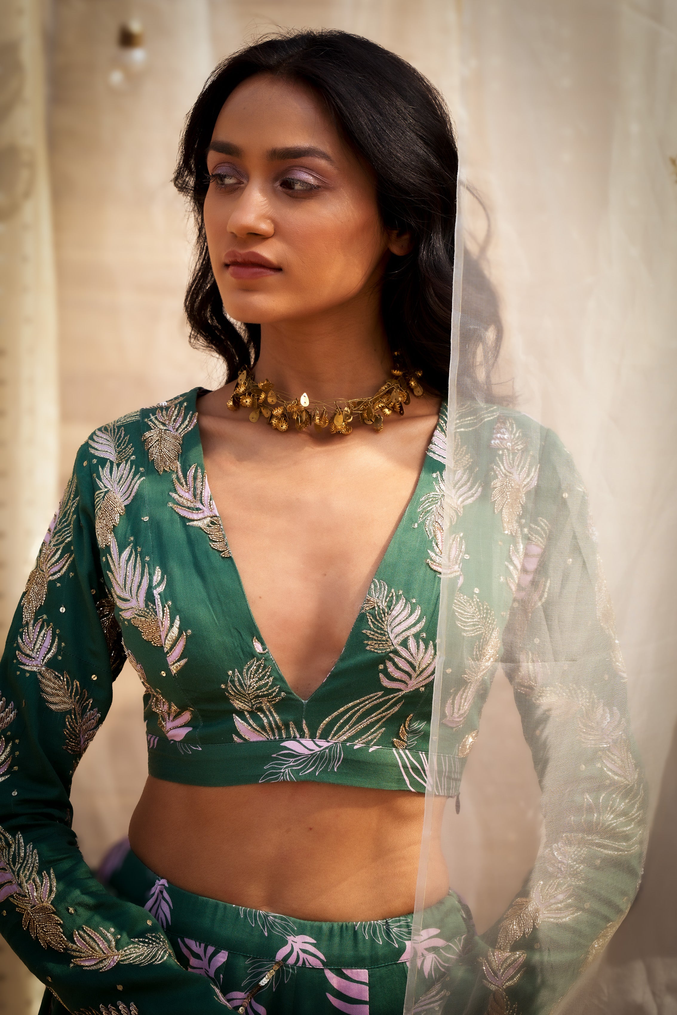 Collection elegantly blends nature's artistry with traditional craftsmanship, drawing inspiration from the grace of mulberry leaves and featuring intricate hand-embroidered Nakshi work in every piece.
