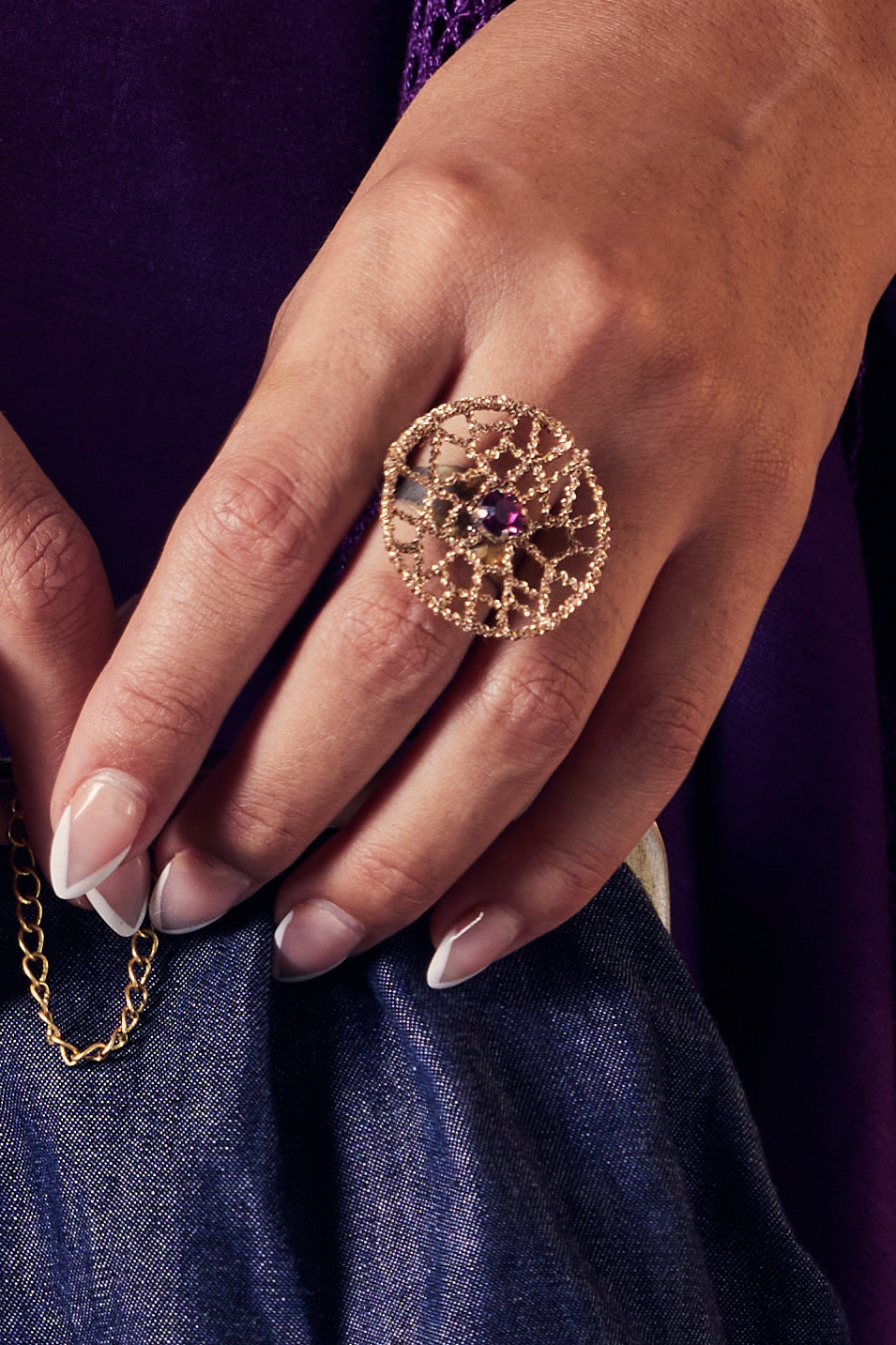 Unique handmade ring with embroidery work. Delicate, light weight and exquisite that will add to your collection of art jewellery.