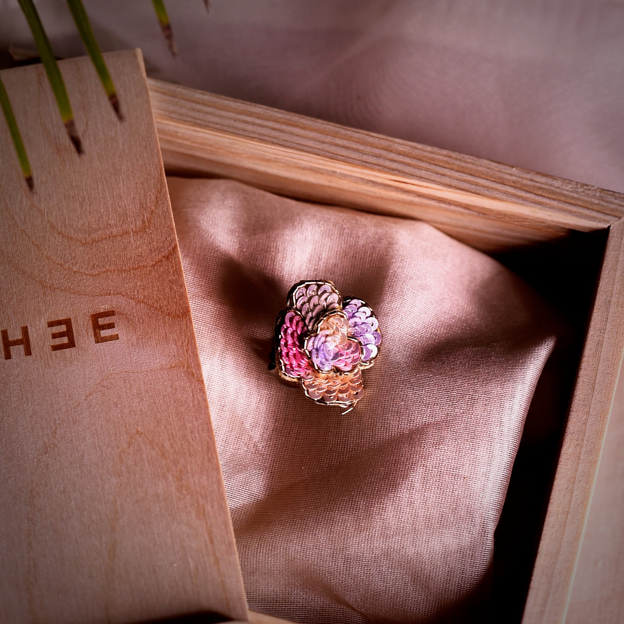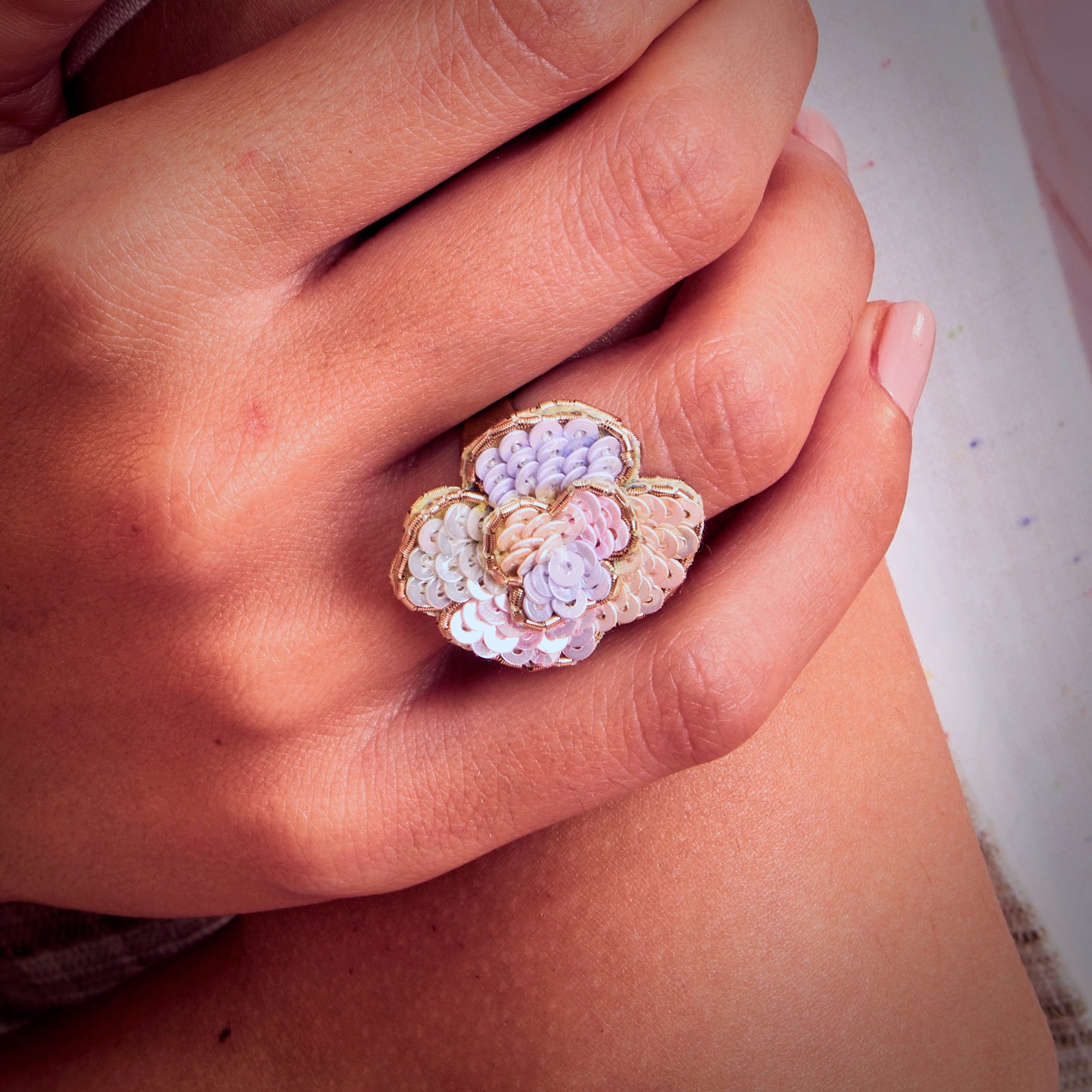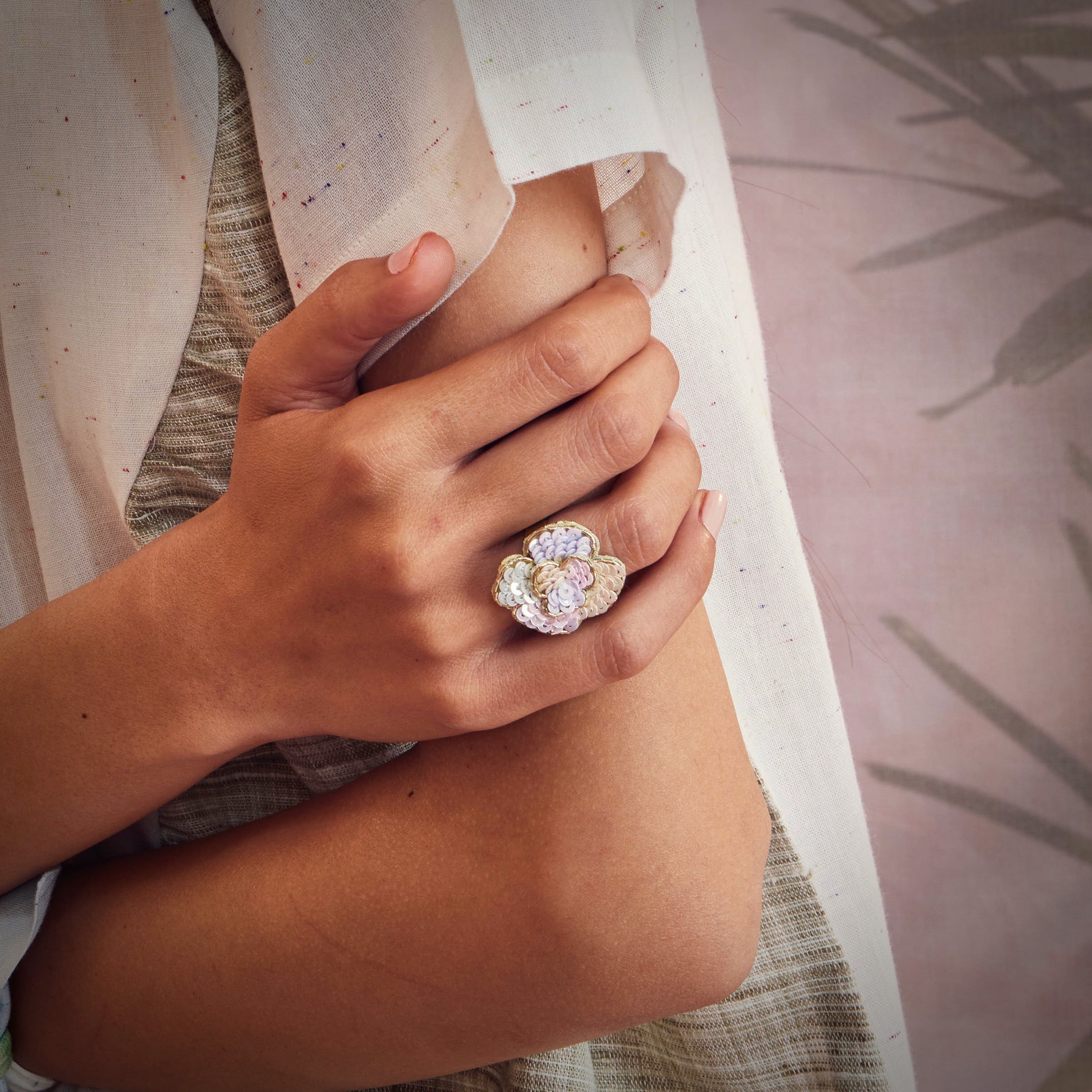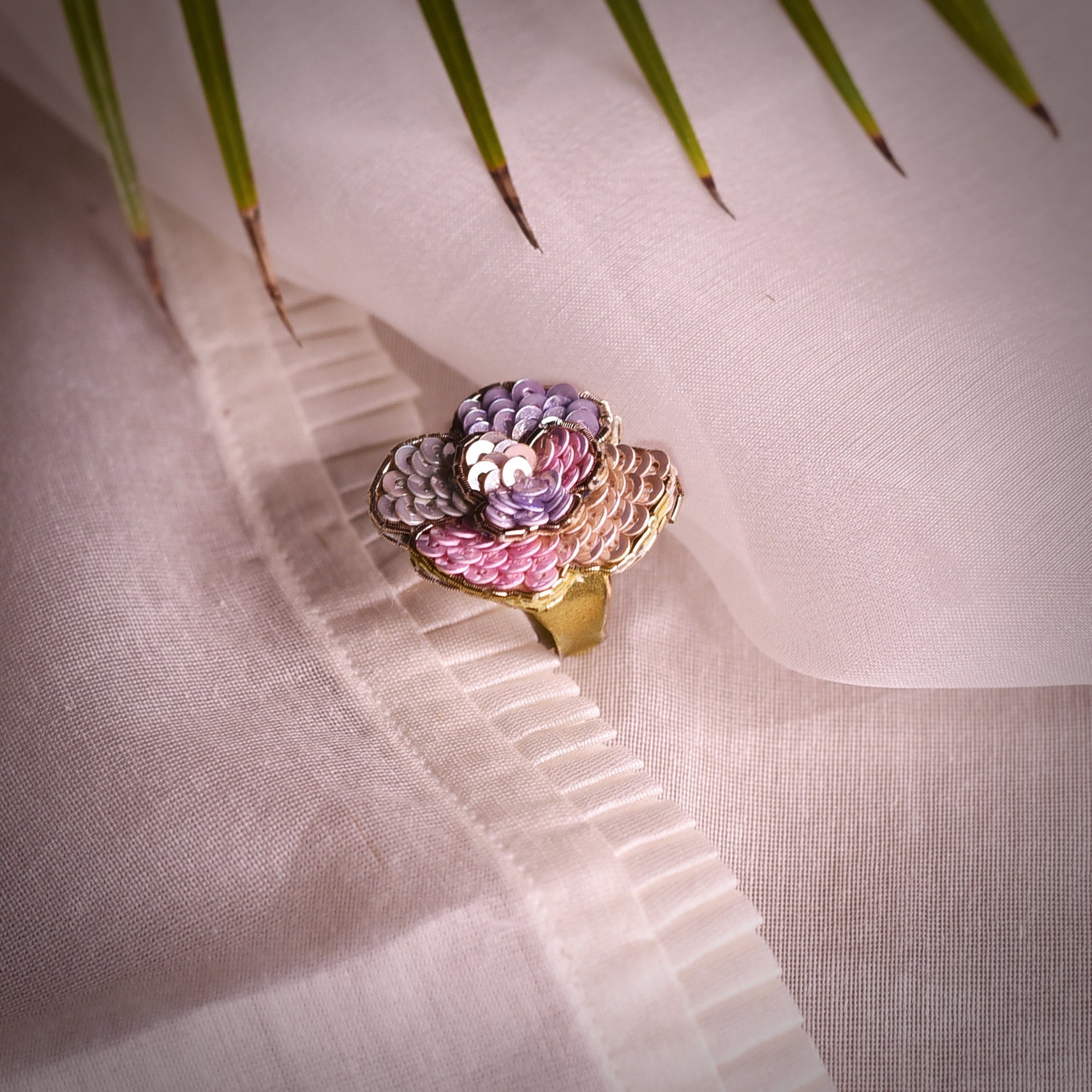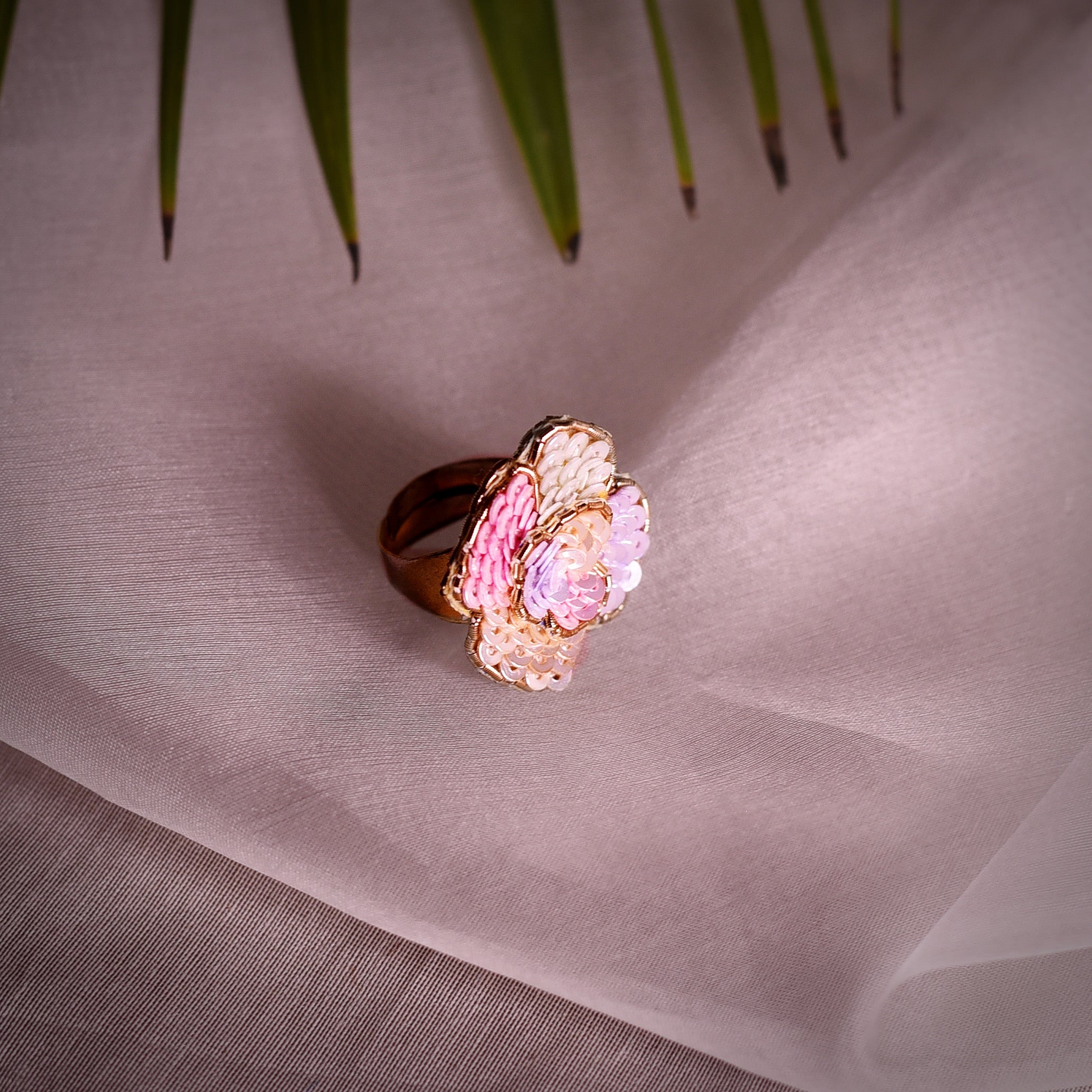 Unique hand embroidered ring with sequin work. Delicate handcrafted, light weight and exquisite that will add to your collection of jewels.