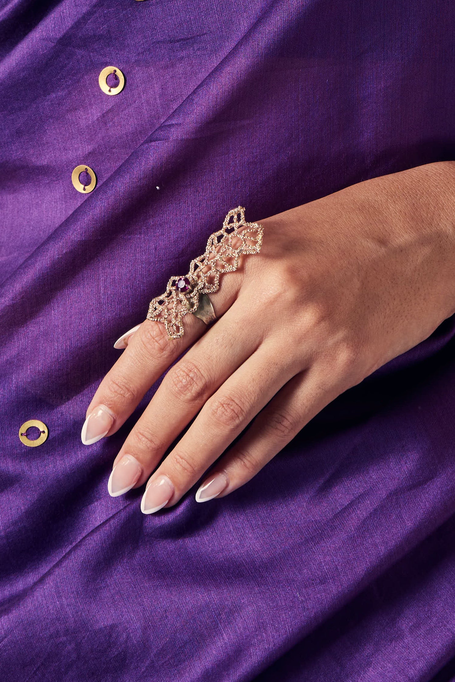 Unique handmade ring with embroidery work. Delicate, light weight and exquisite that will add to your collection of art jewellery.