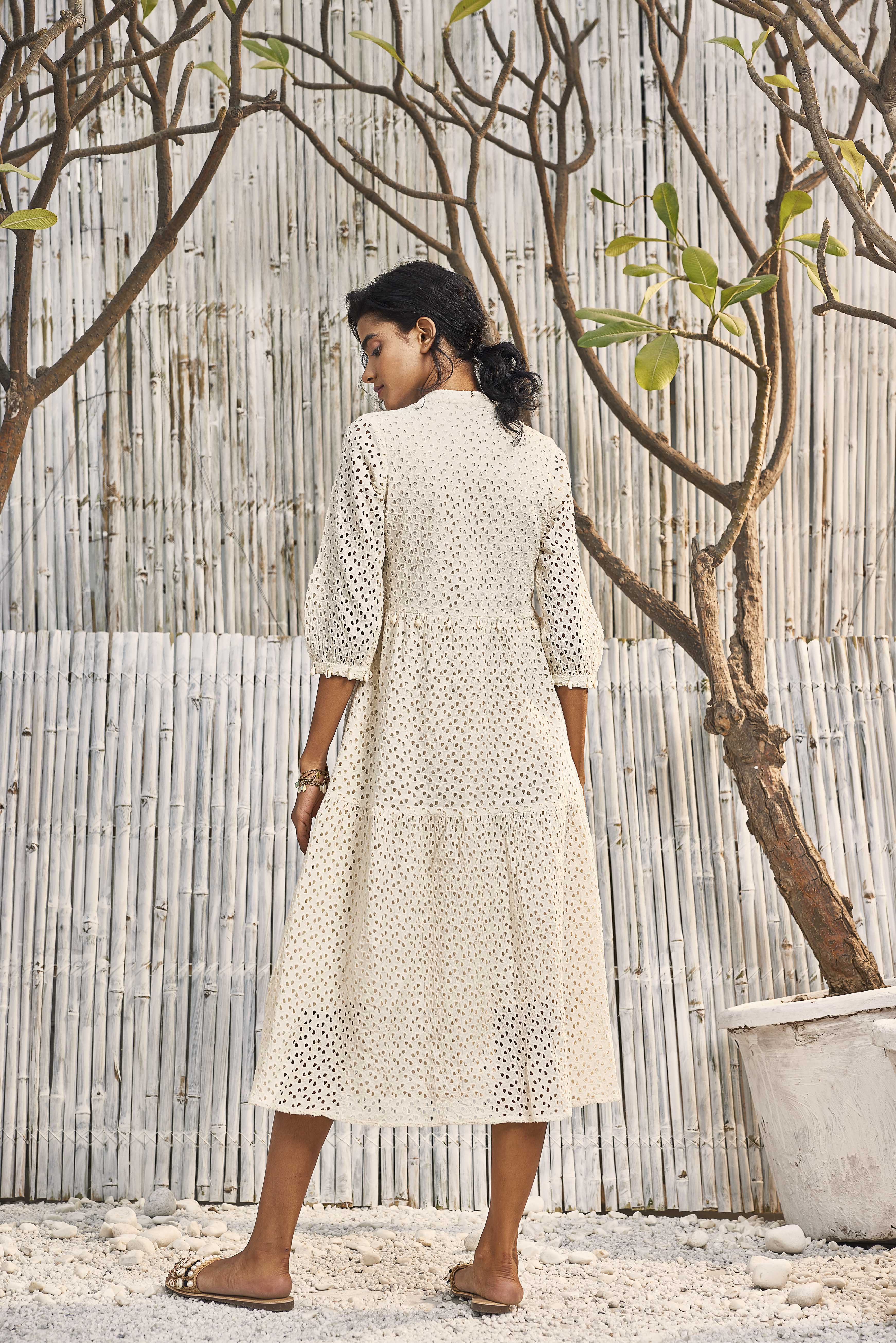 Breezy Cotton Cutwork Ivory Dress
