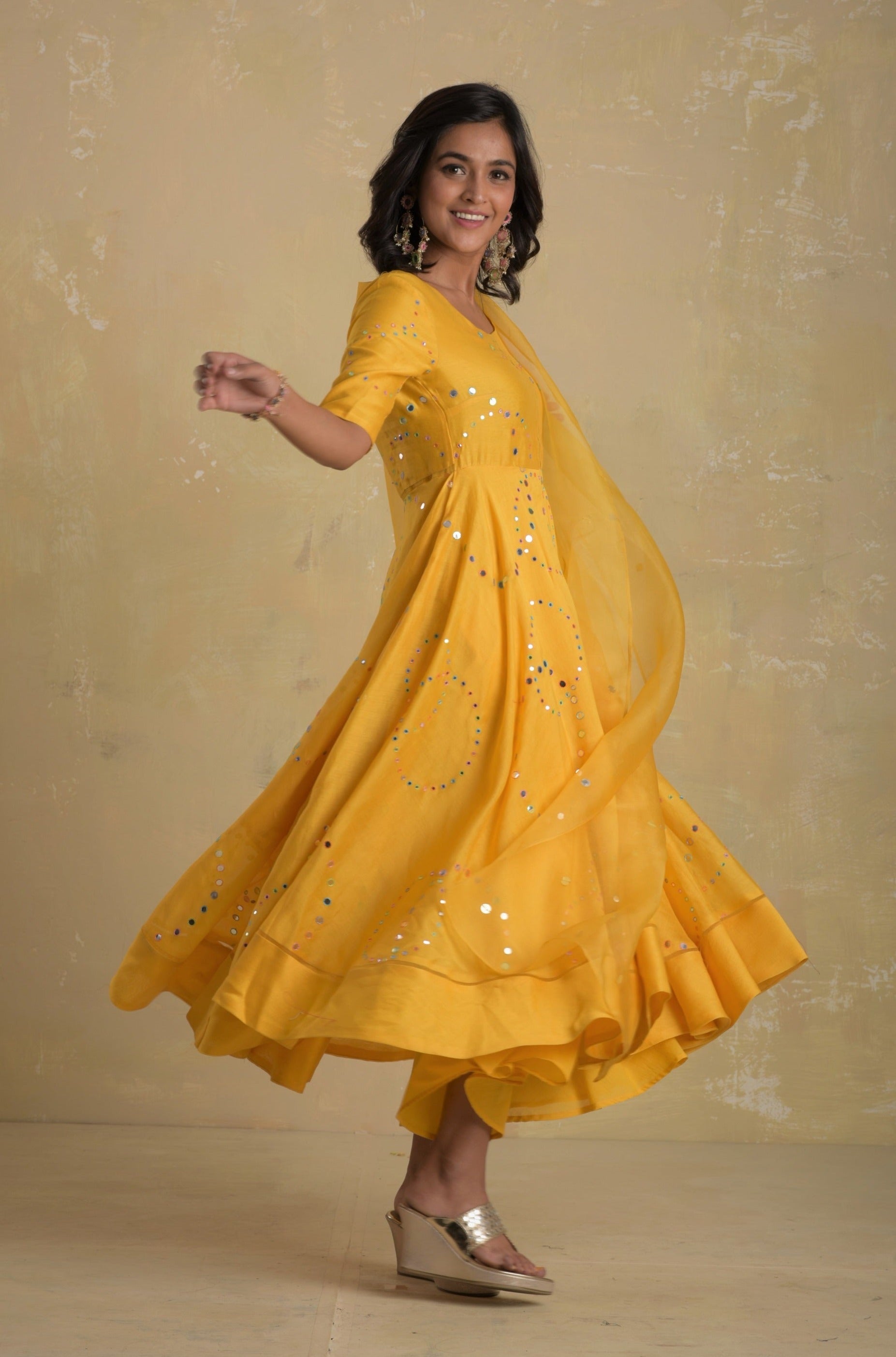 Sunflower Yellow Flared Anarkali - Size M