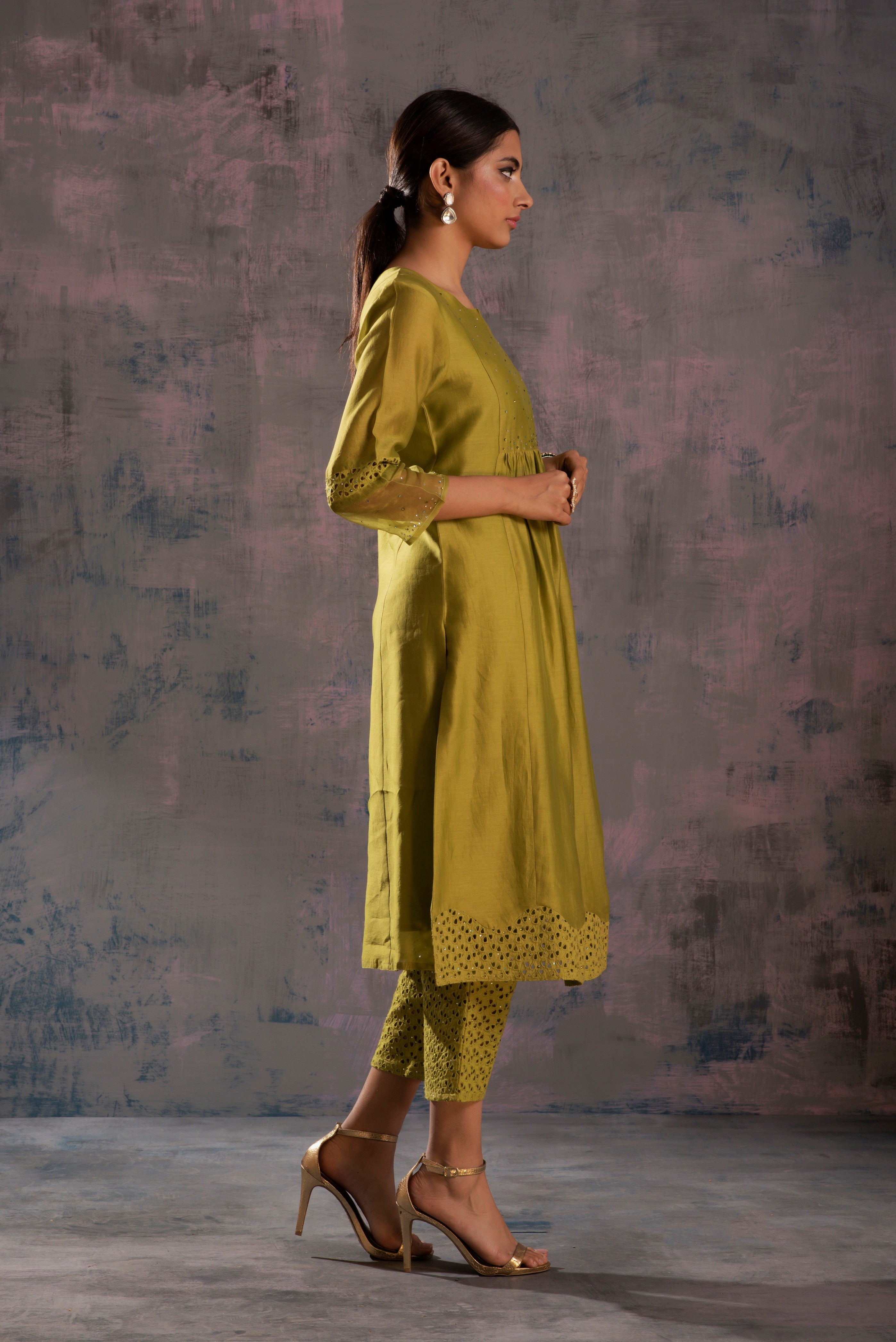 Kurta: Chanderi, Cutwork - 100% Cotton