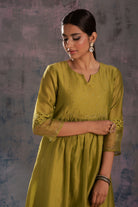 Swarovski Berry Green Front Gathered Kurta Set - Size XS