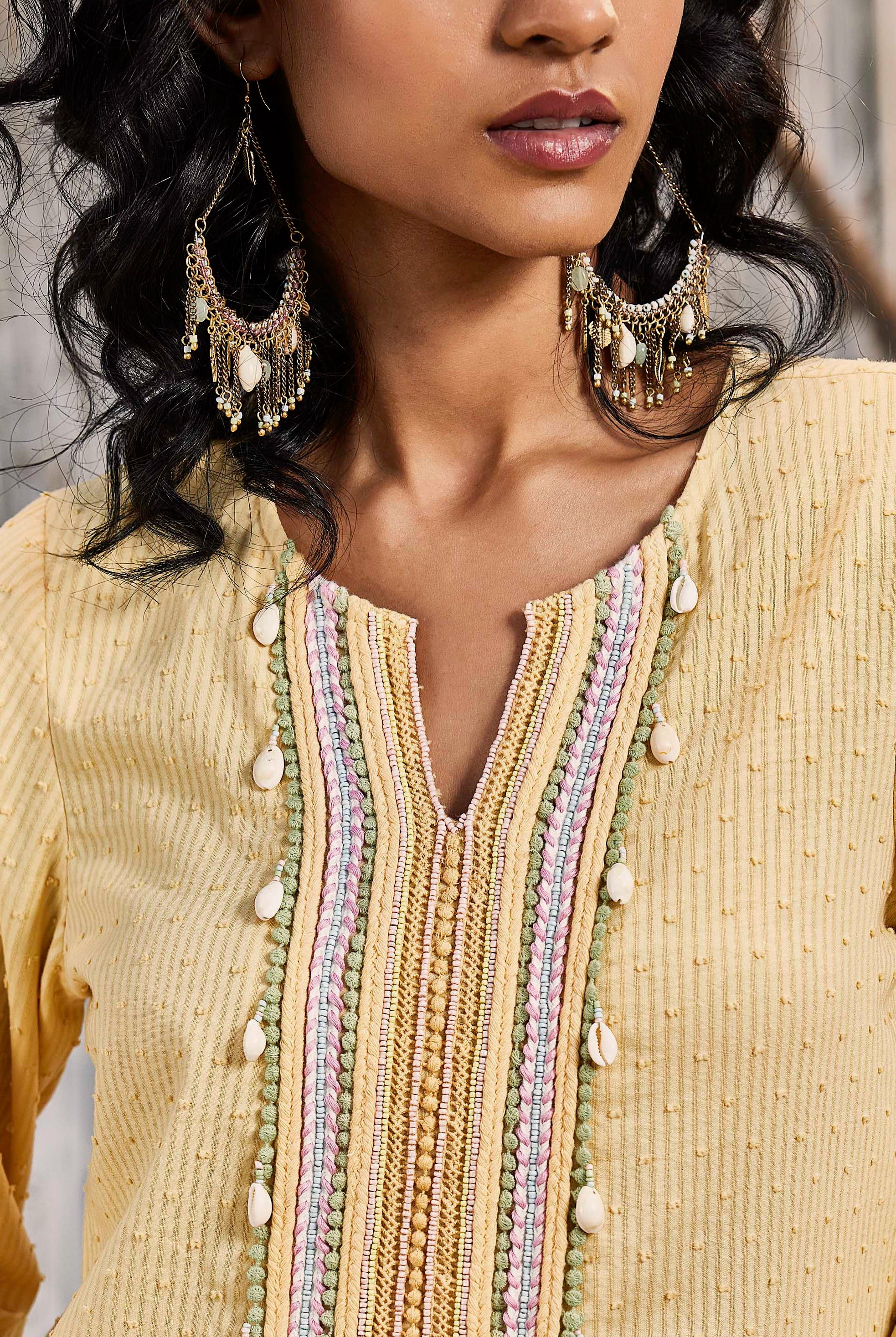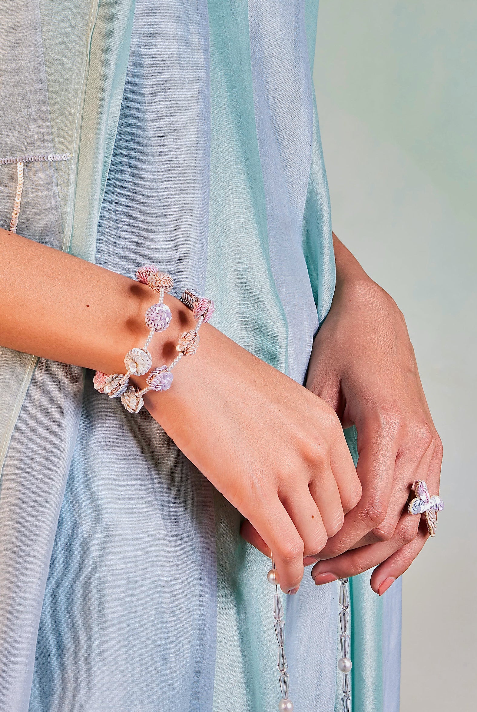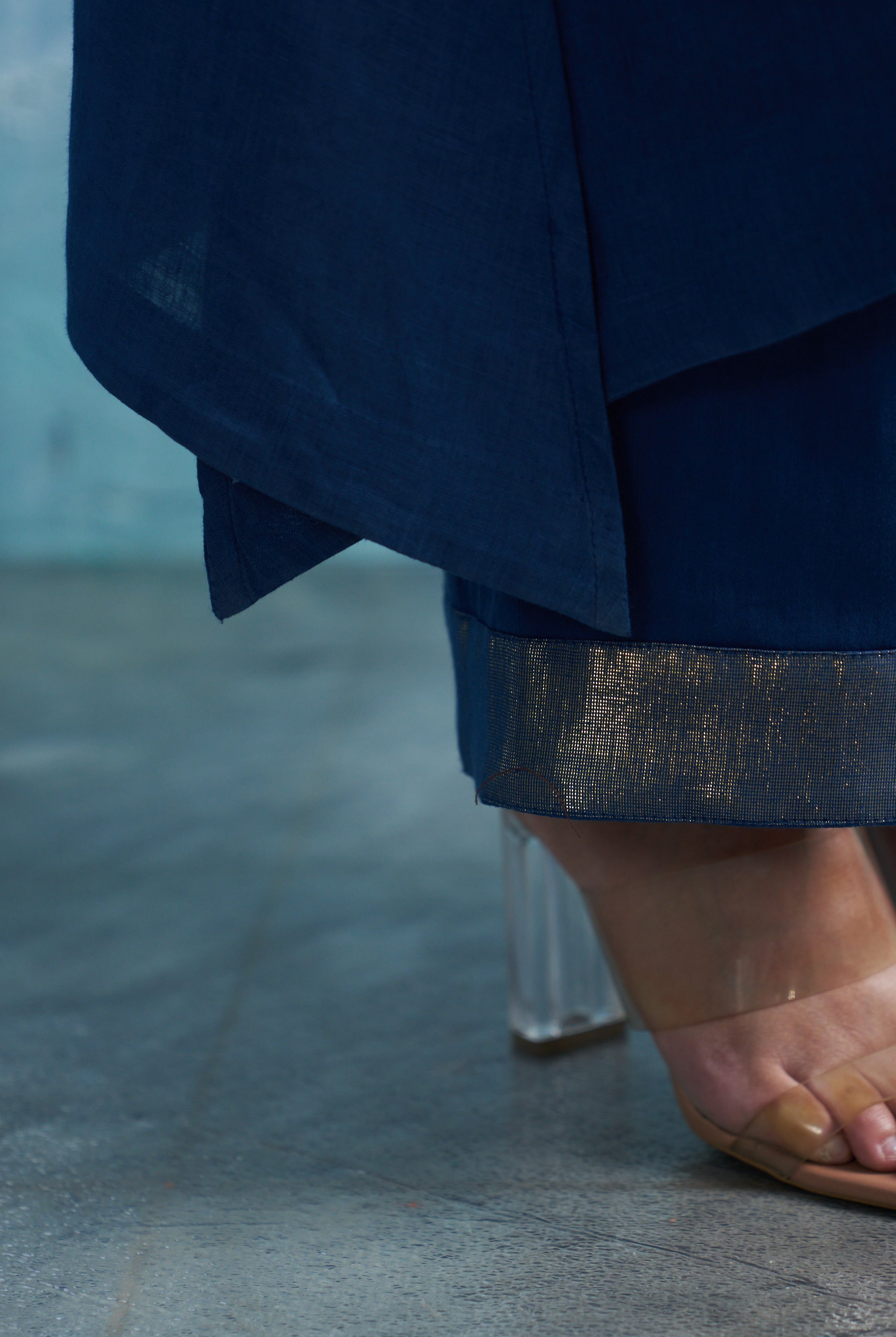 In garments with mirror work, the embroidery is zari embedded foil mirrors which are non erosive, unbreakable and light weight.