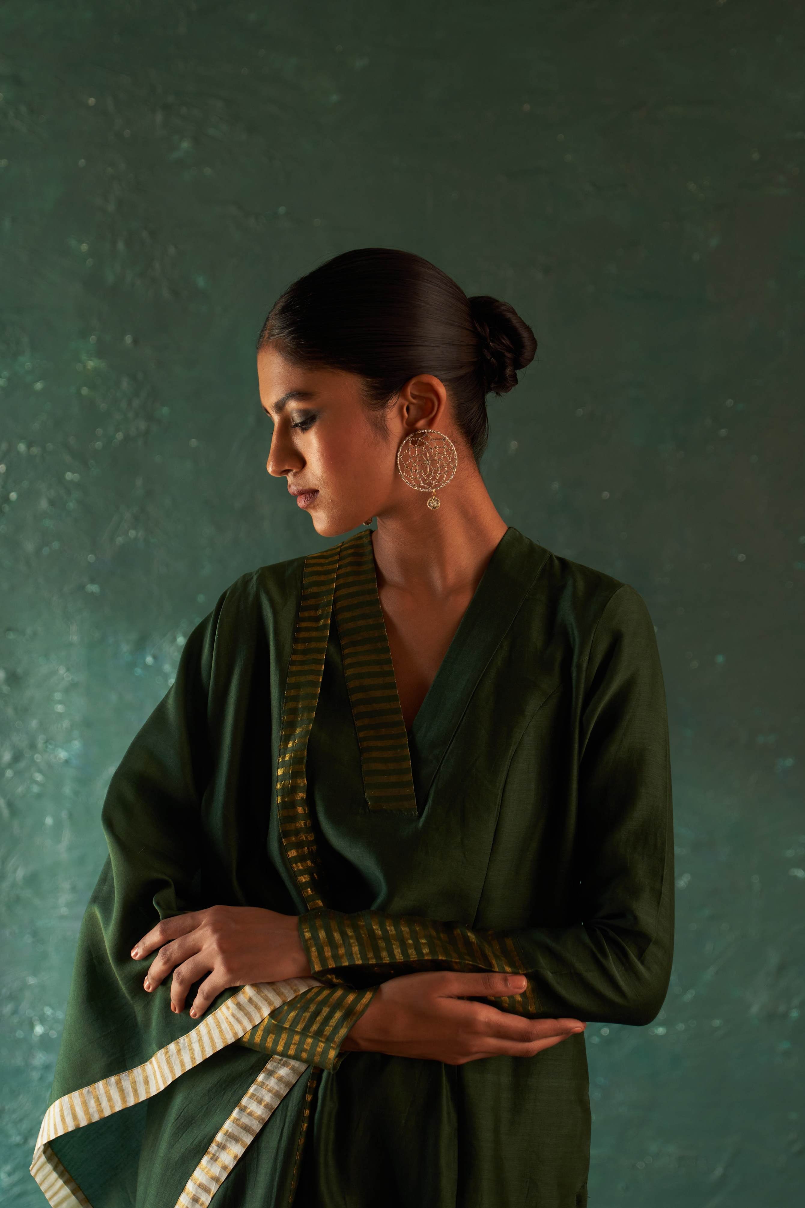 Midas Deep Green Chanderi Straight Kurta - Set of 3