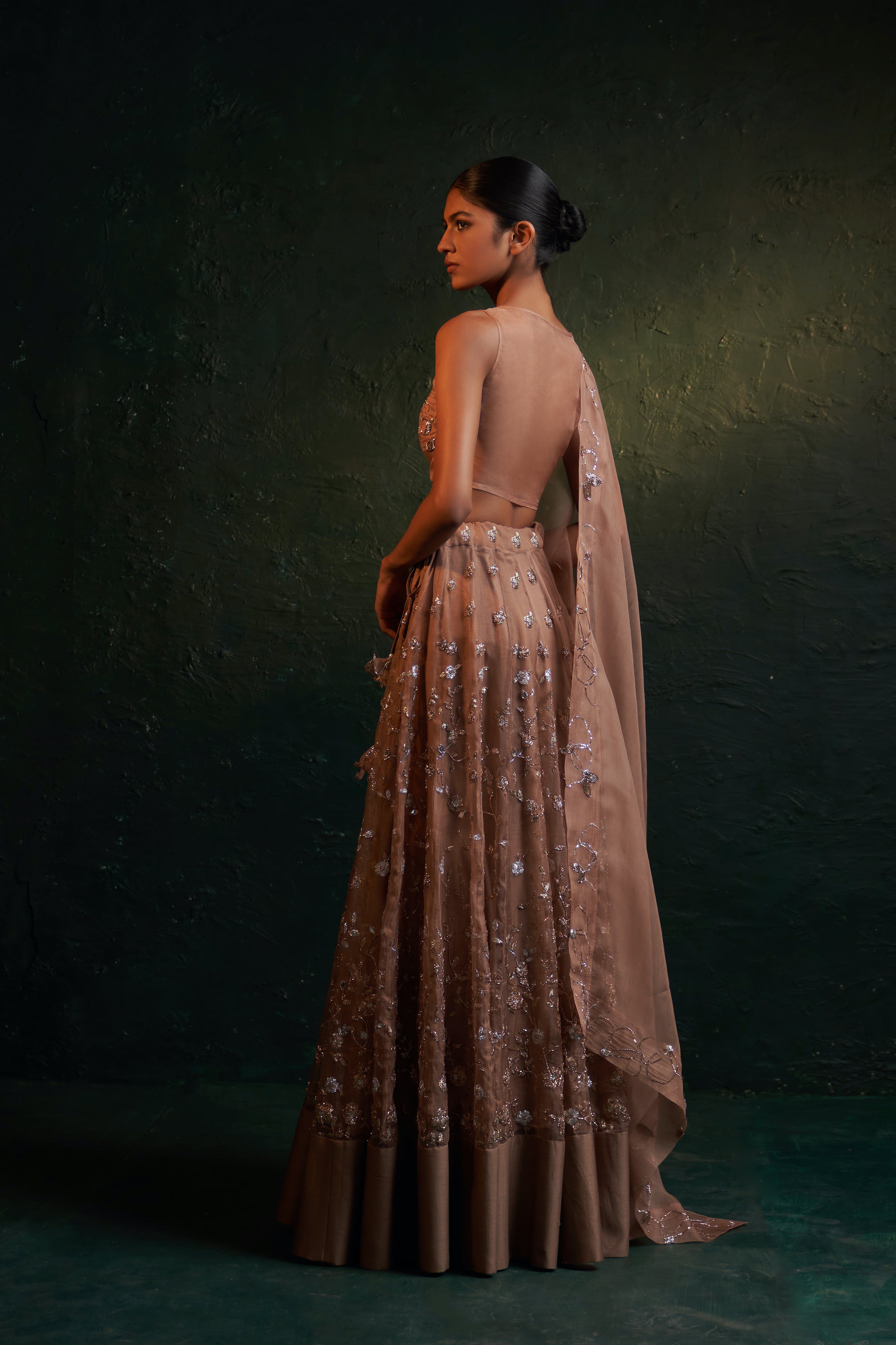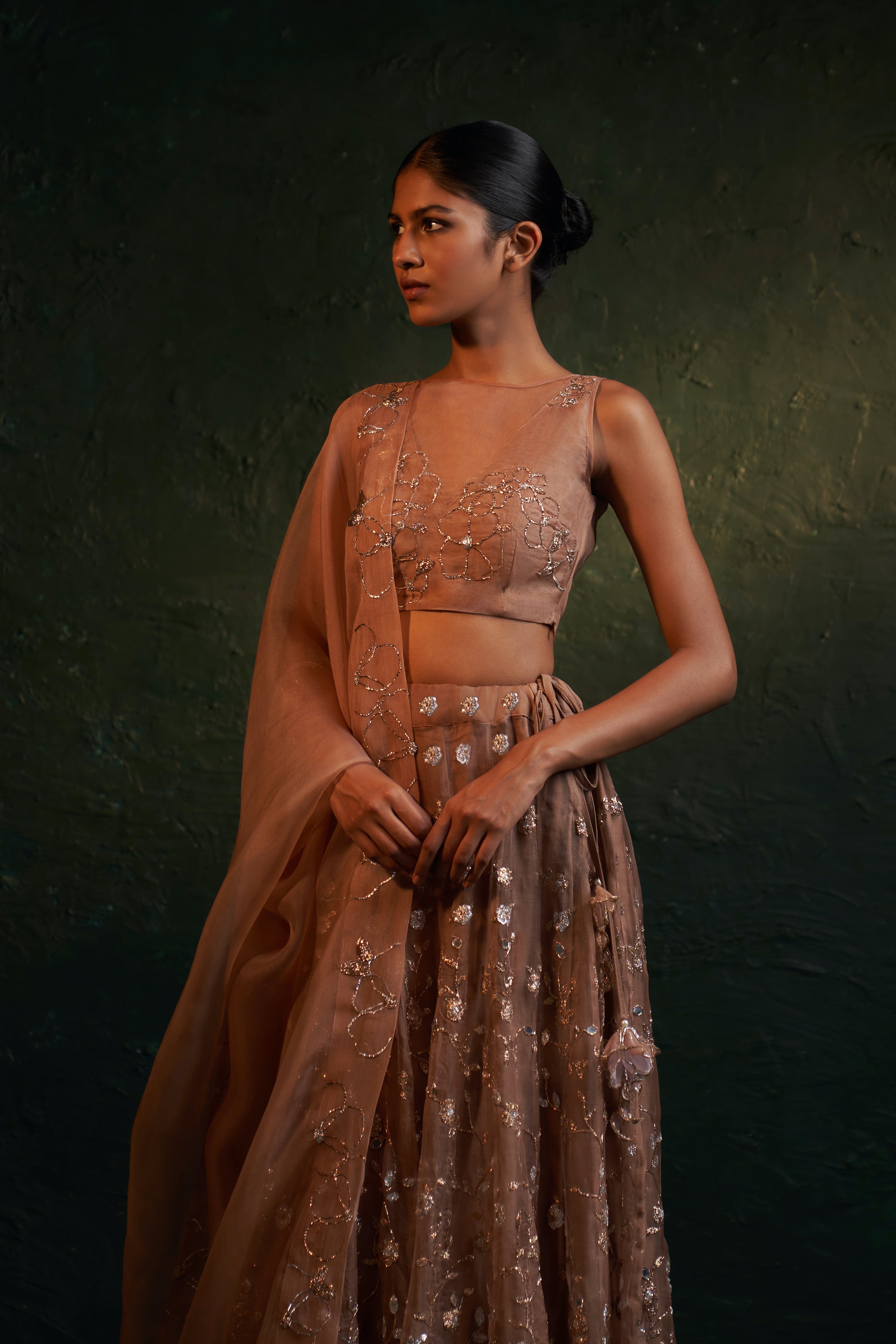 Midas Ginger Organza Hand Embroidered Lehenga - Set of 3