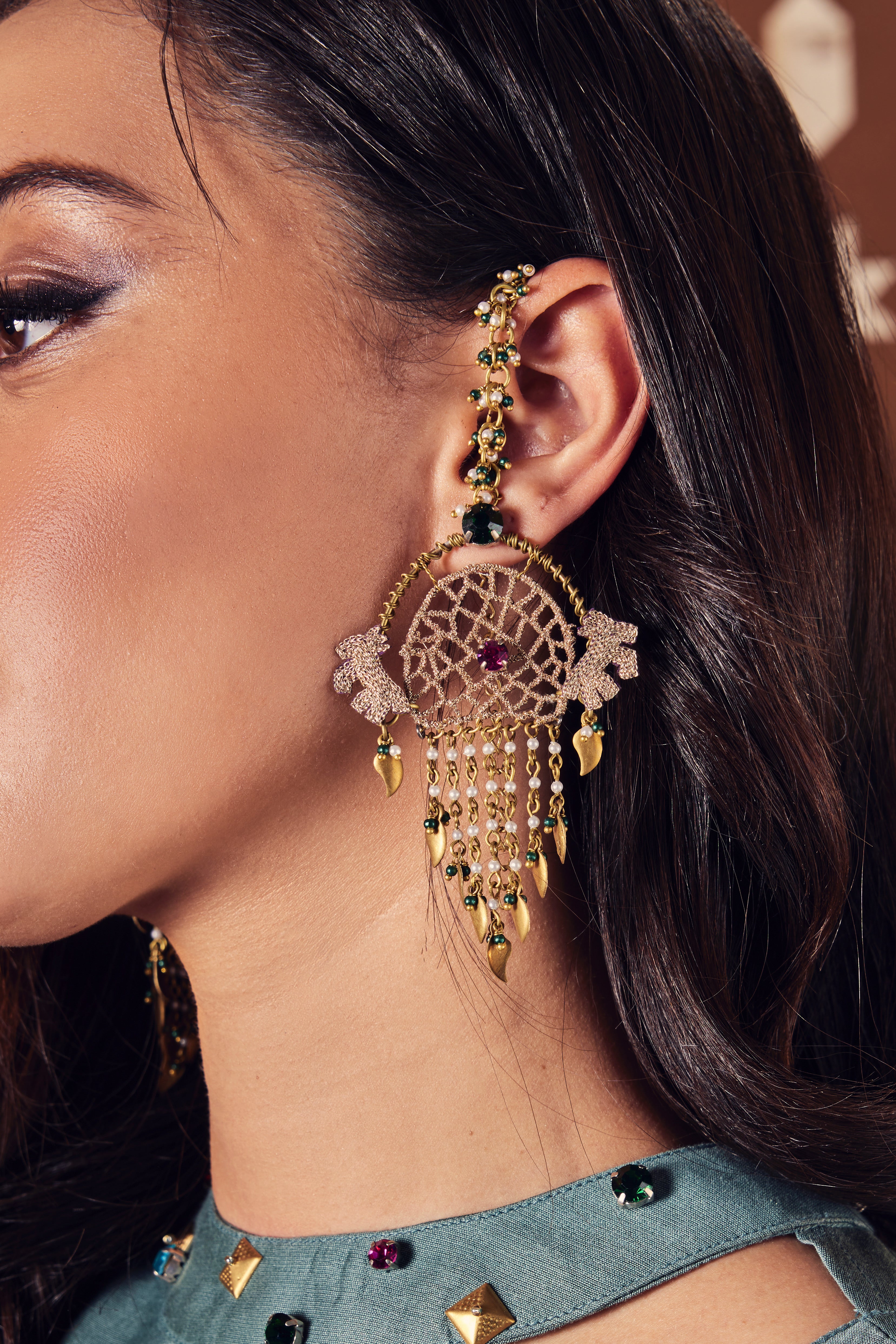 Unique handmade earrings with embroidery work. Delicate, light weight and exquisite that will add to your collection of earrings.