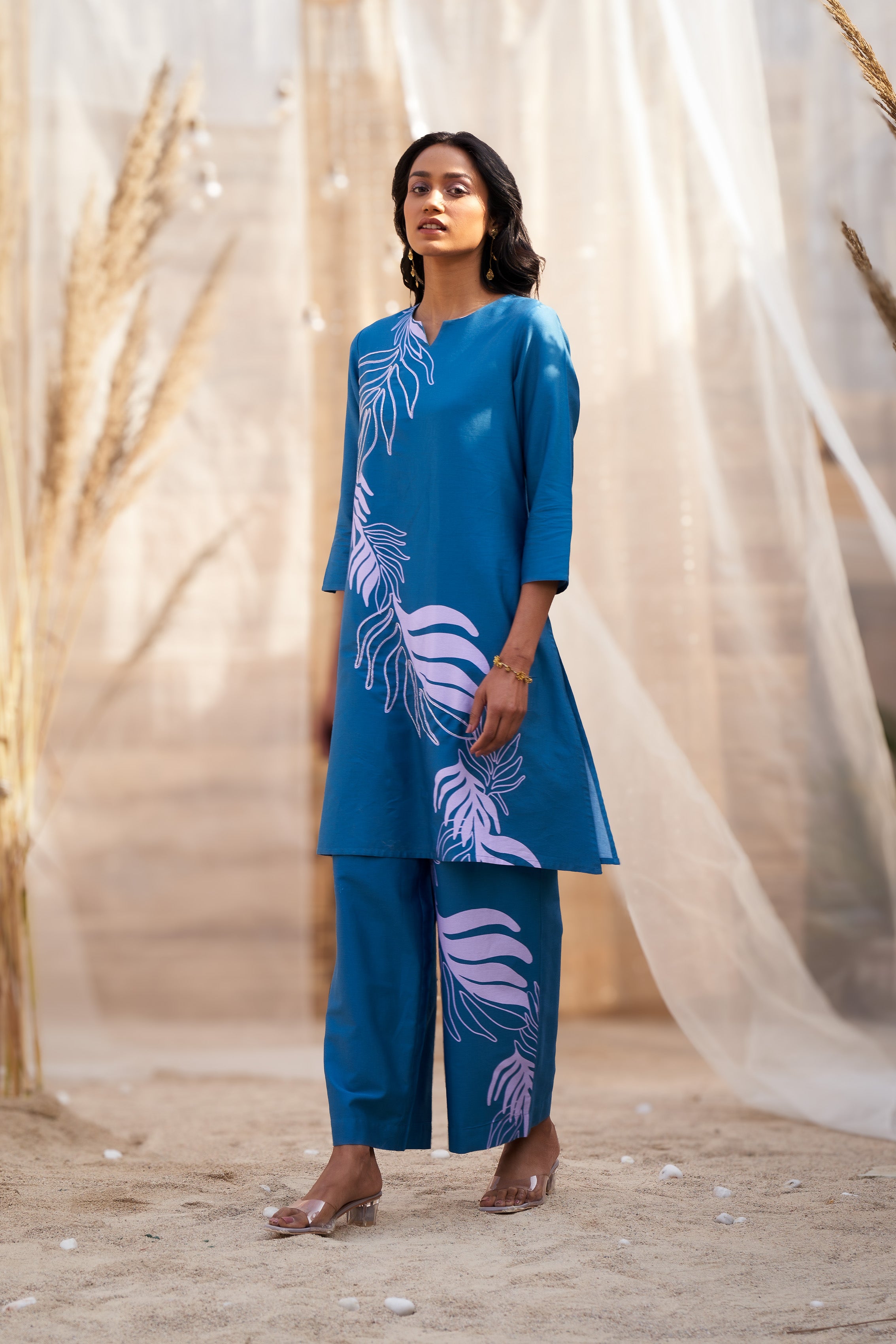Step out in style with this Bold Leaf-Print Co-ord Set, designed for a striking and contemporary look. The kurta features a notch neckline and 3/4th sleeves, combining comfort with modern elegance. Paired with flared pants in the same bold leaf print, this set creates a statement-making silhouette that’s perfect for casual outings, festive events, or special occasions. Crafted from premium cotton satin fabric, it ensures all-day comfort while keeping you effortlessly stylish. Accessorize with minimal jewelry and heels to complete the chic ensemble.