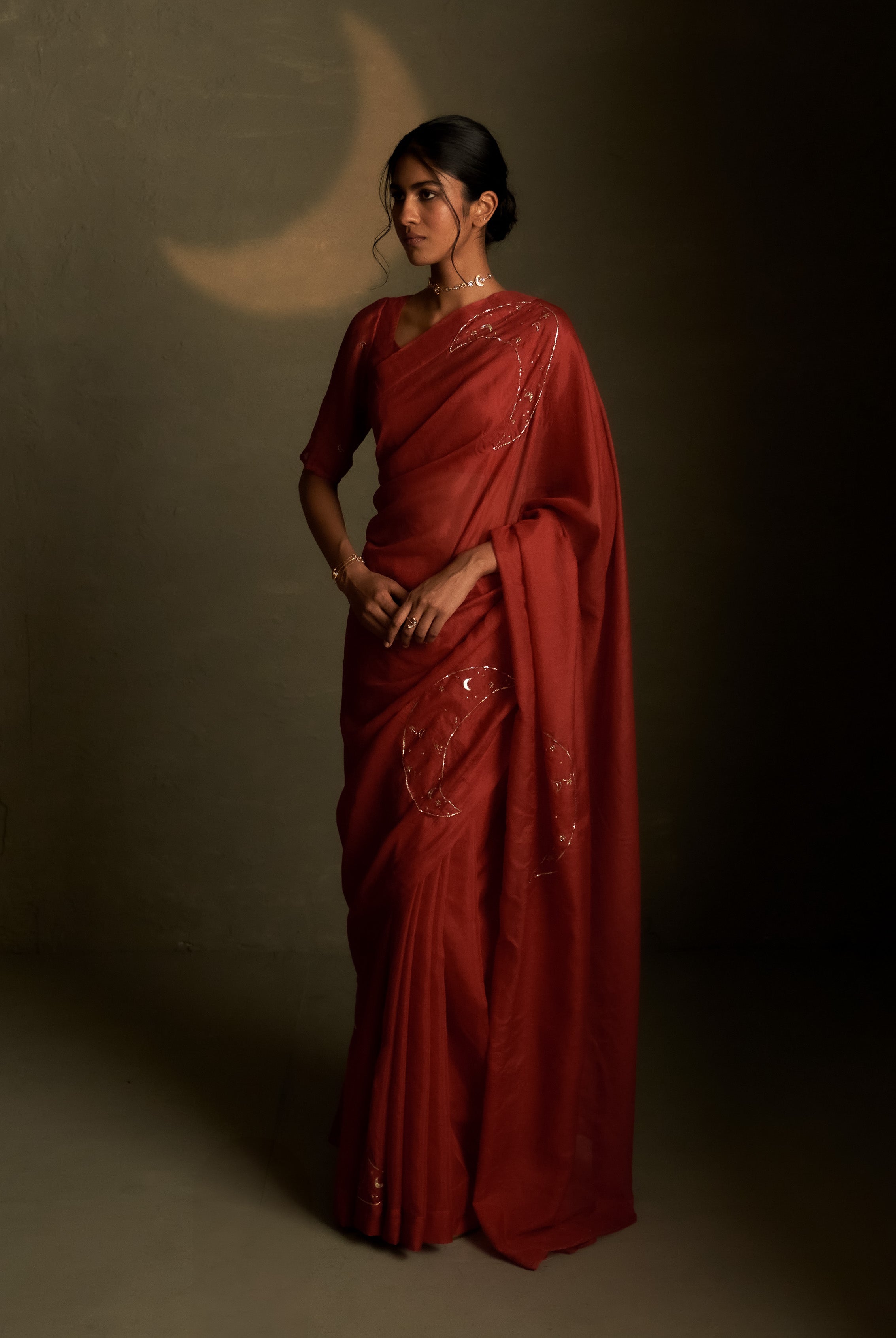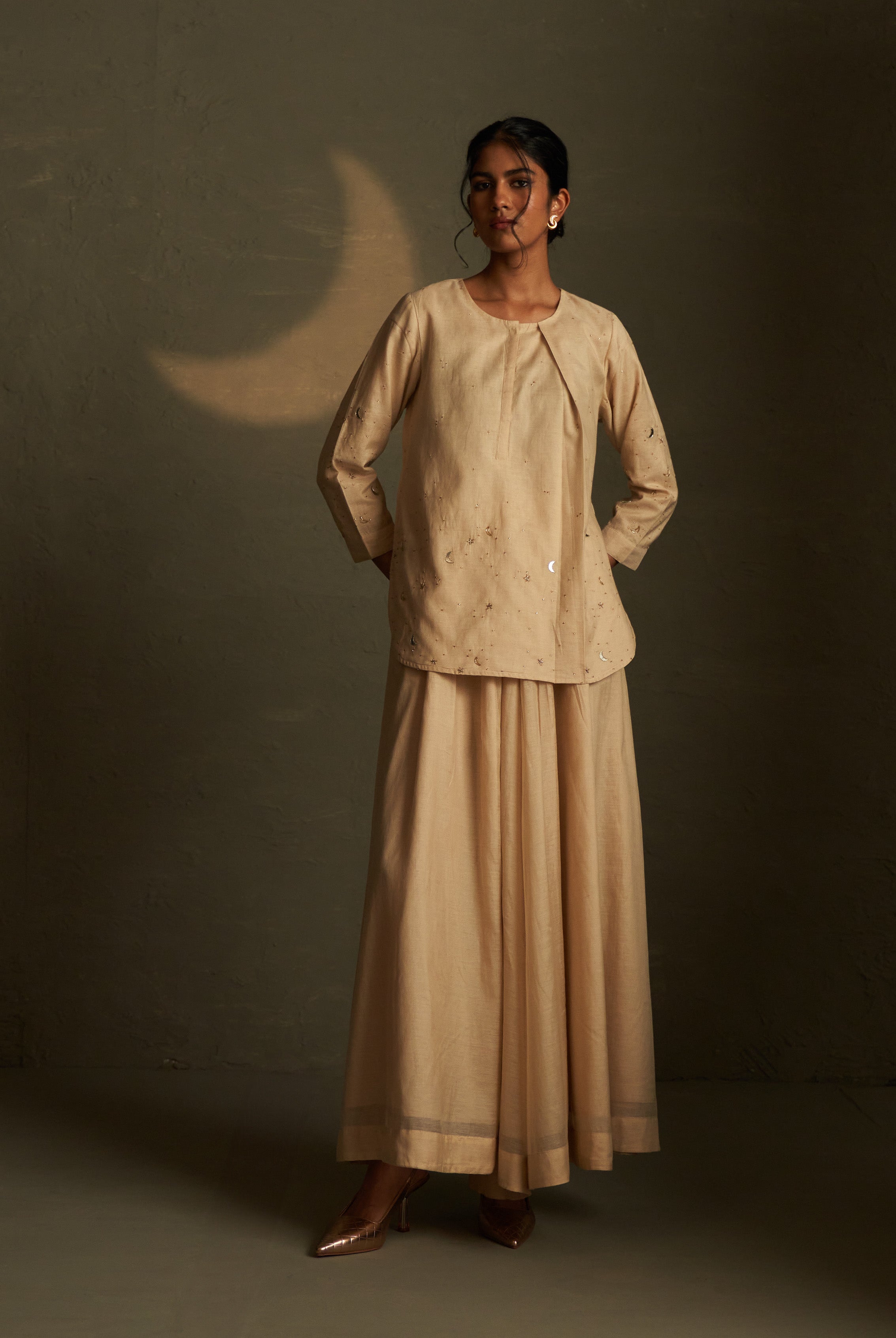 Threads of gold, whispers of time — Maaya weaves handworked Zari into modern designs, blending old-world charm with quiet sophistication.